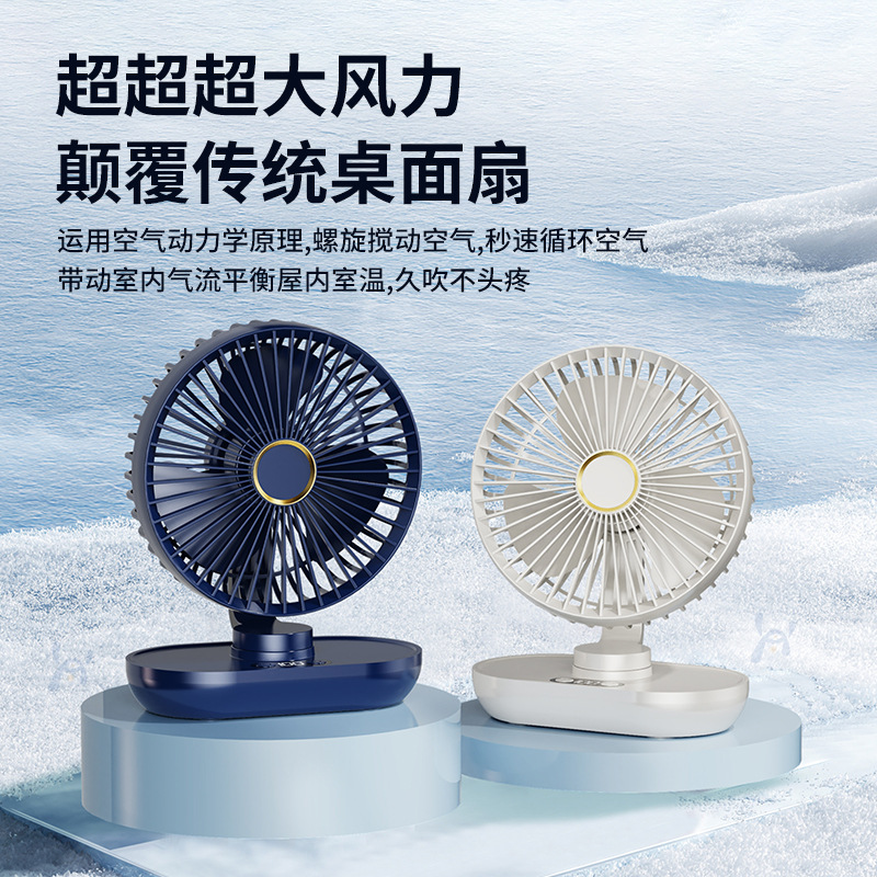 デスクトップ自動首振り小型ファン、軽くて強力な充電式ファン、屋外学生寮、長いバッテリー寿命