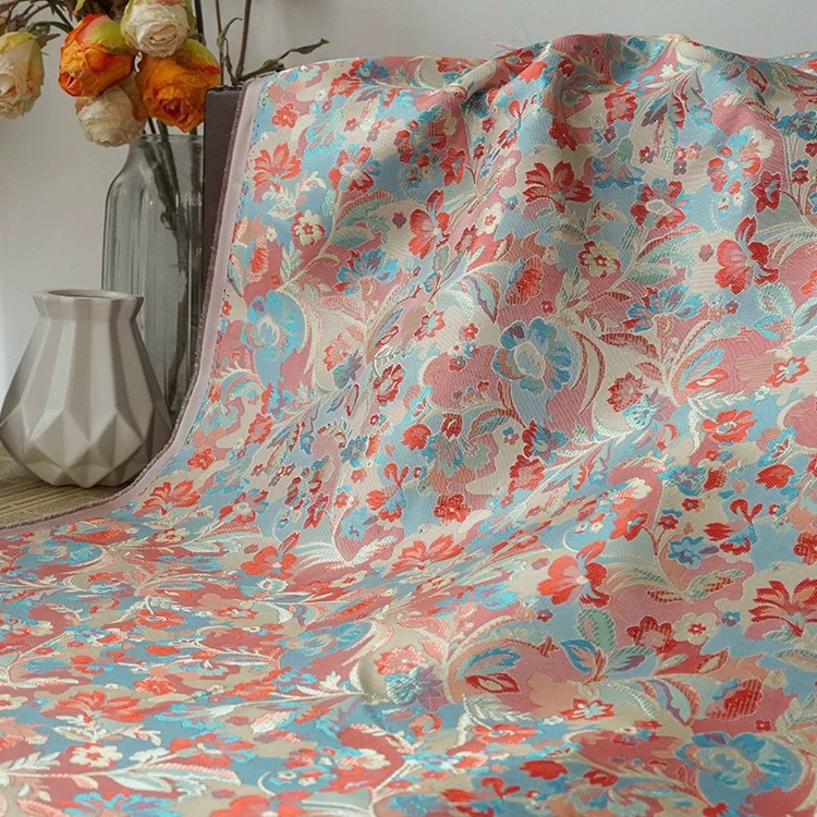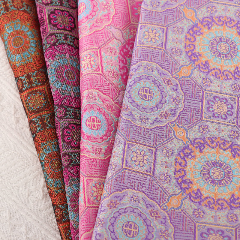 新中式仿蜀锦八达晕提花服装面料新中式仿蜀锦国风马甲旗袍外套