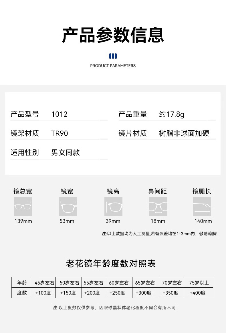 老眼鏡女性ファッション優雅超軽量防ブルーライト老眼鏡ハイビジョン老人老光全枠老眼鏡男