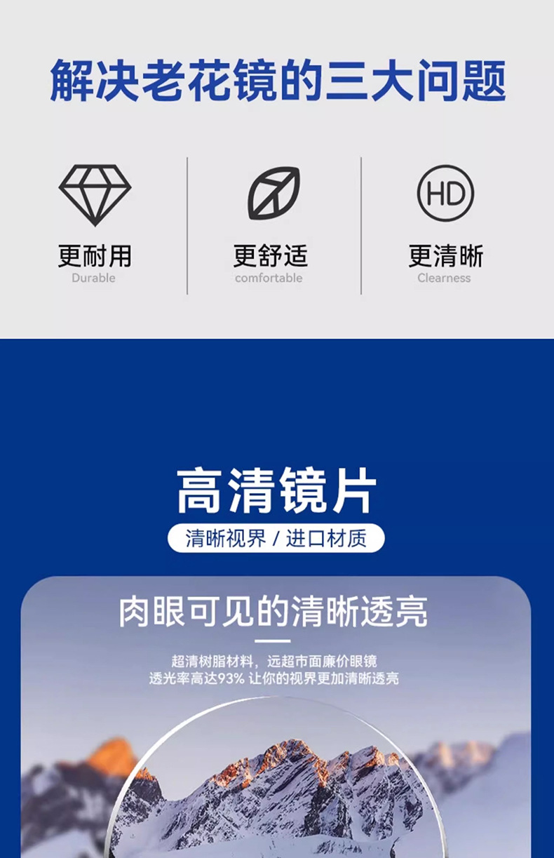 高档两用老花眼镜中老年高清老花镜男高清防蓝光老年人女自动变焦