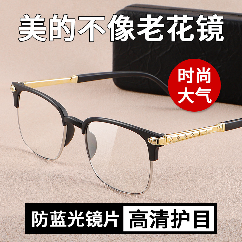 品牌老花眼镜男式中老年高清防蓝光抗疲劳老光眼镜高档正品超轻