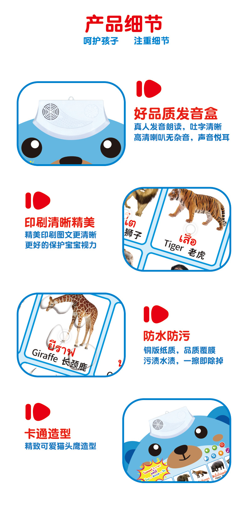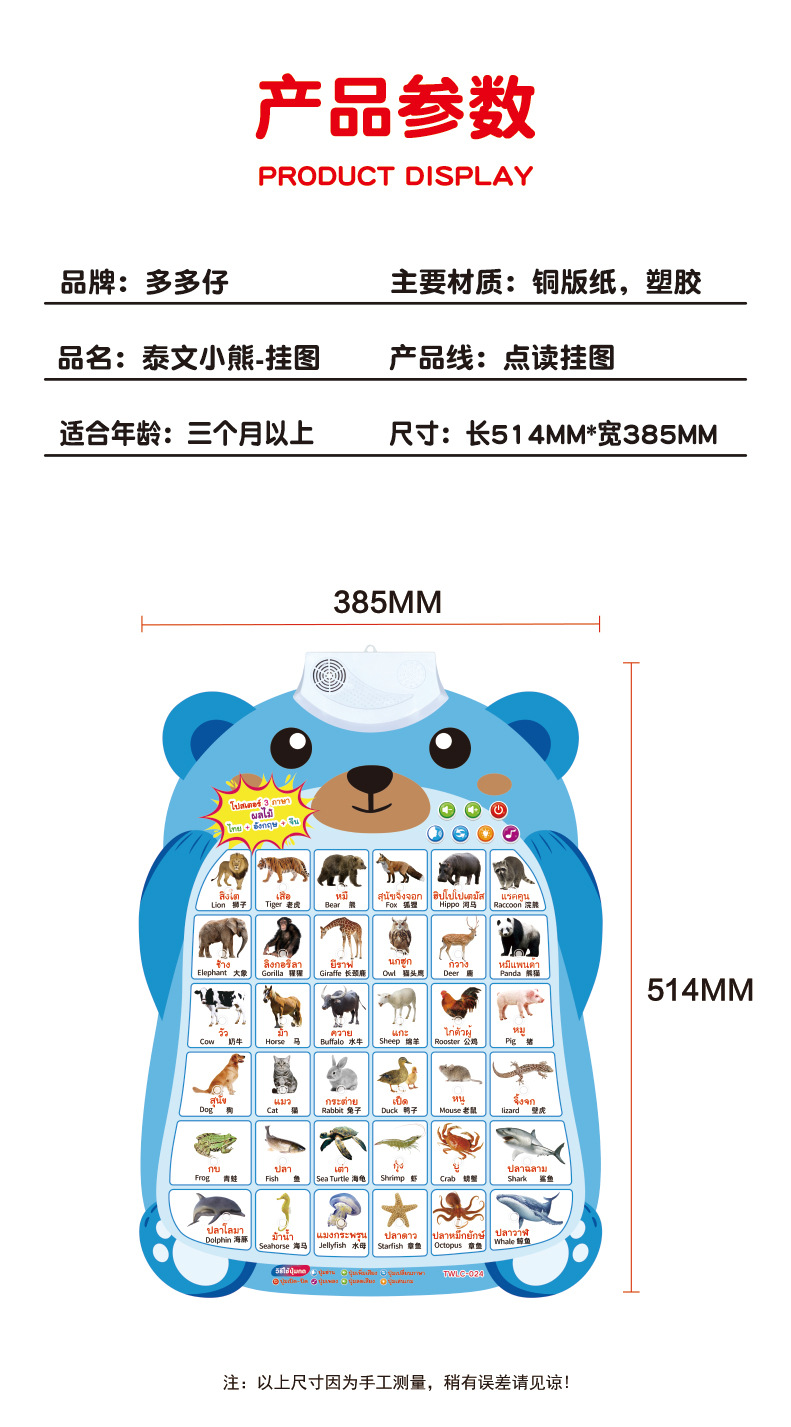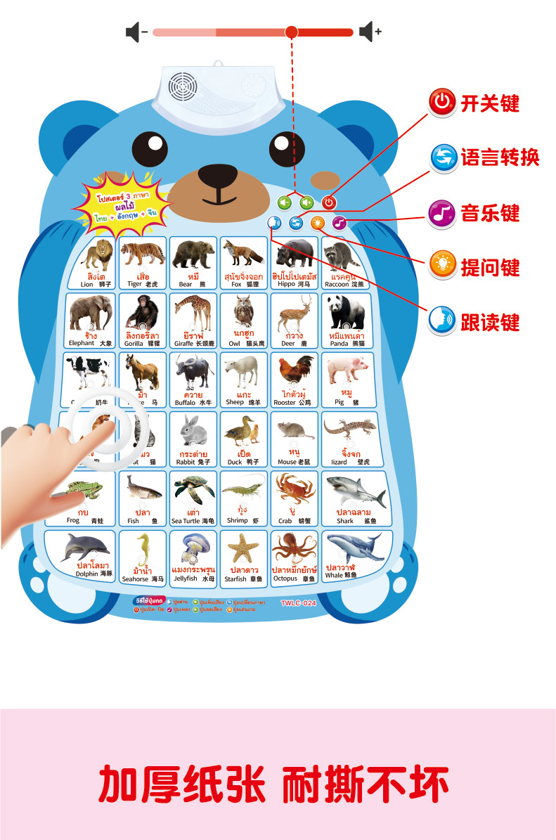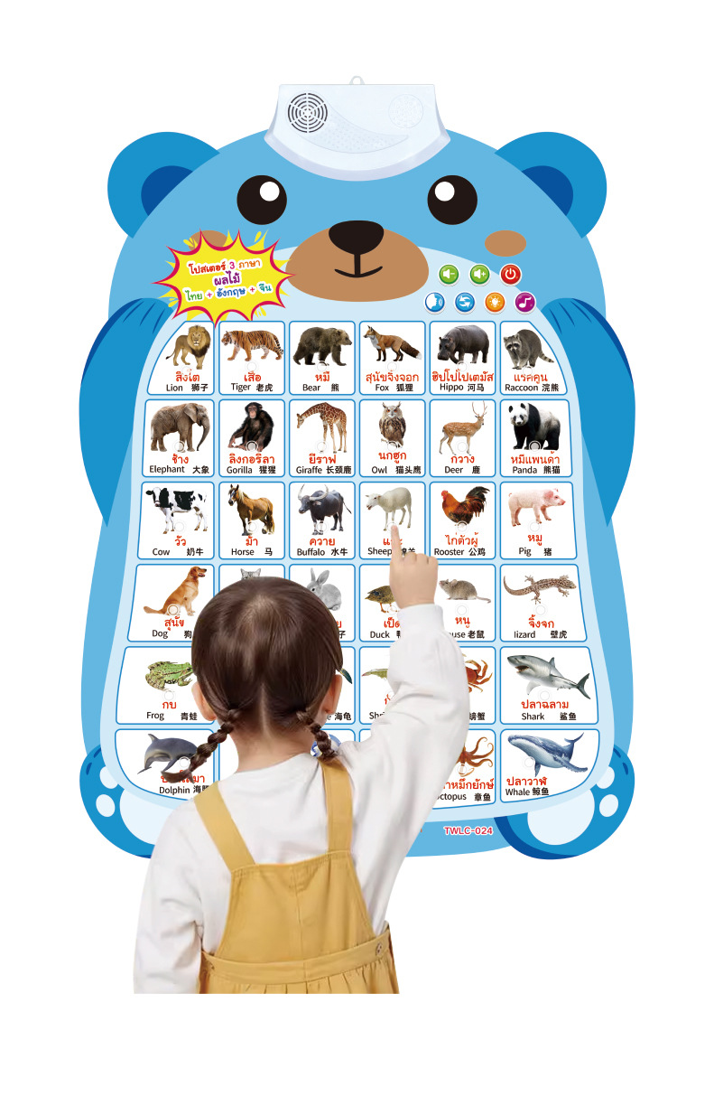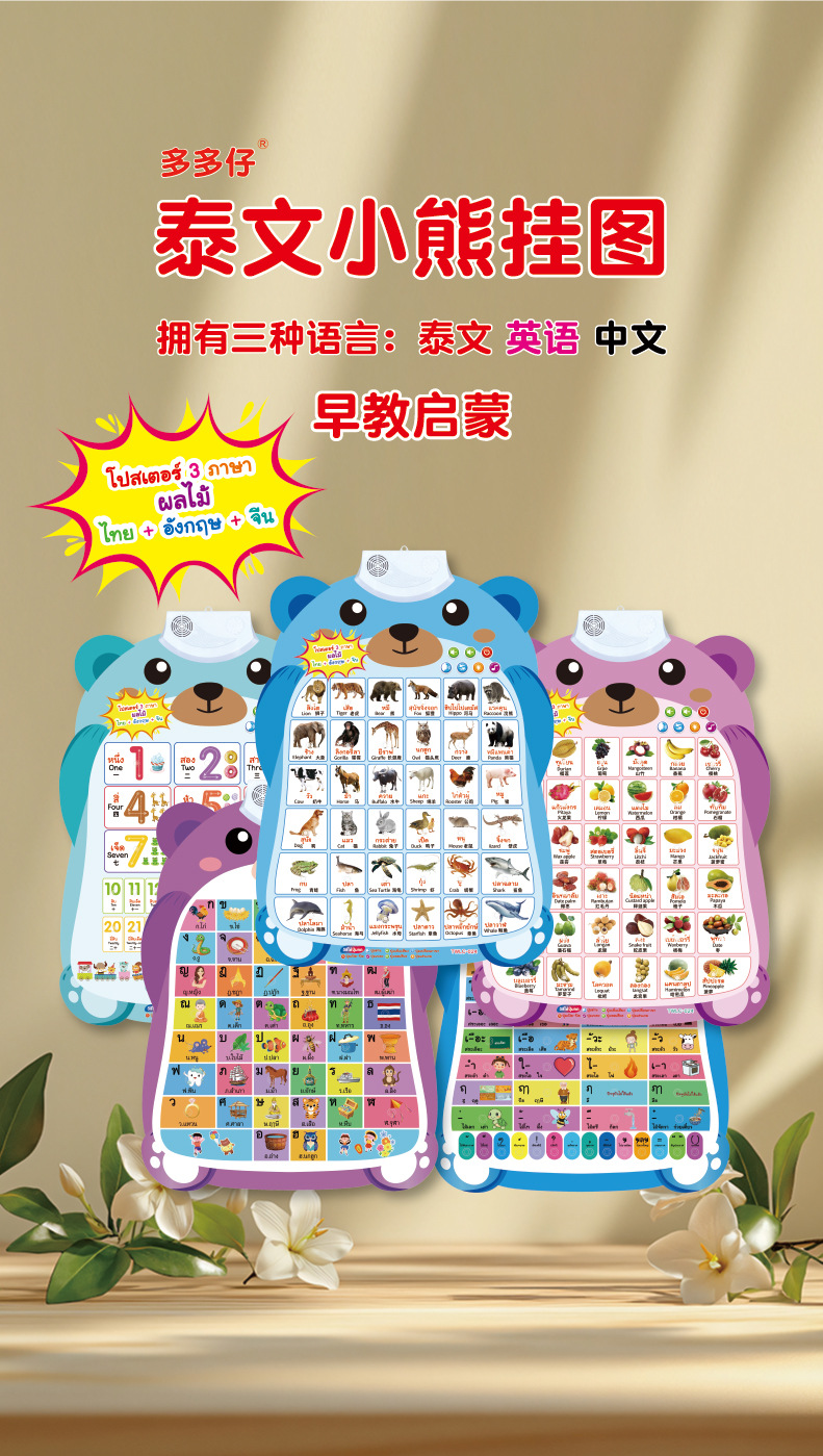 跨境泰文英语中文三语小熊有声挂图儿童早教认知发声墙贴科教玩具