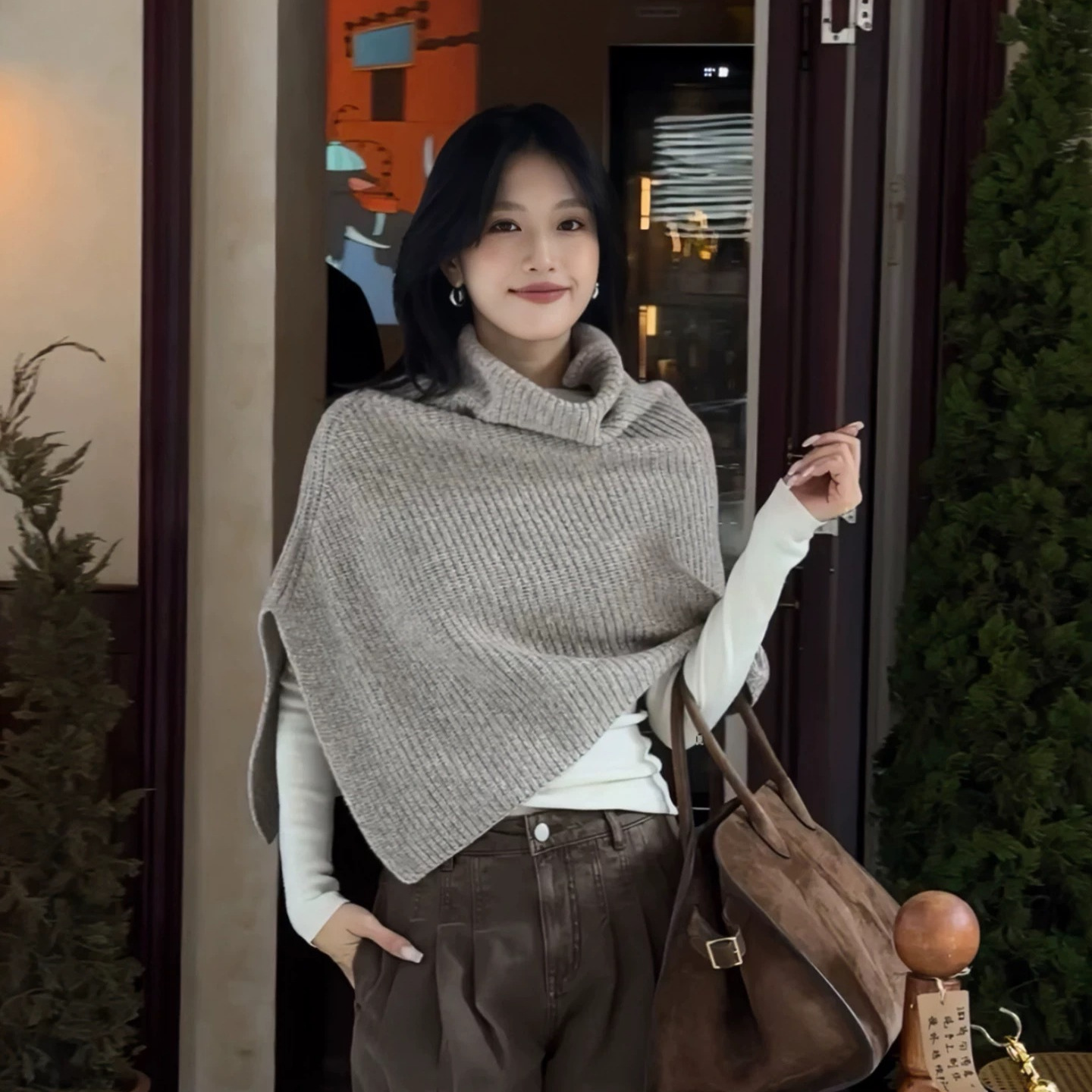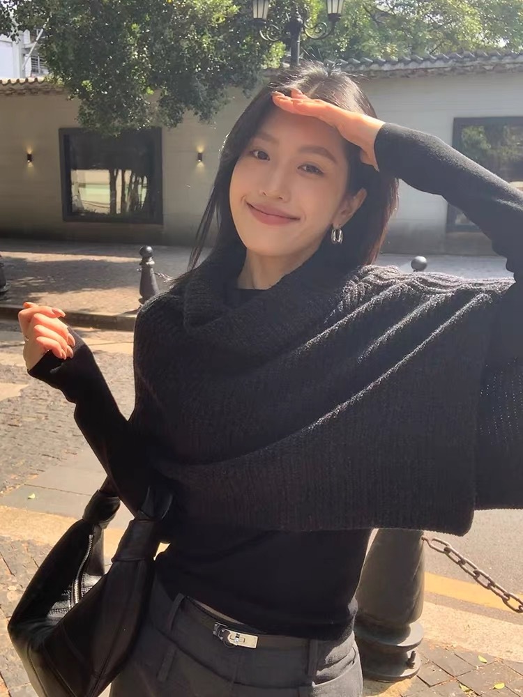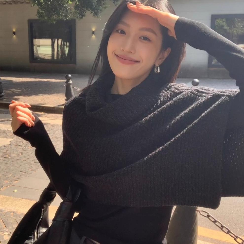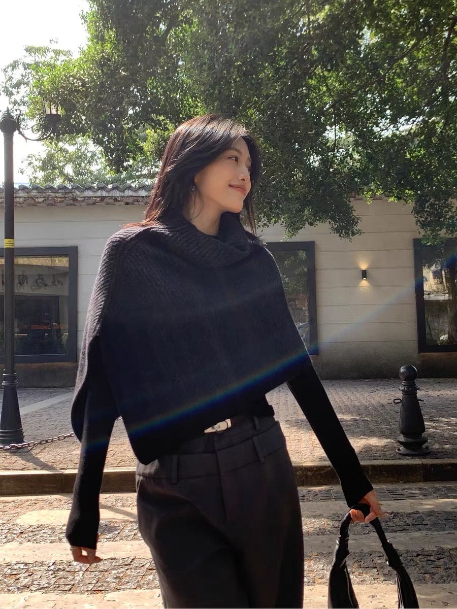 设计感不规则高领斗篷套头毛衣女秋冬季高级感超好看宽松针织上衣