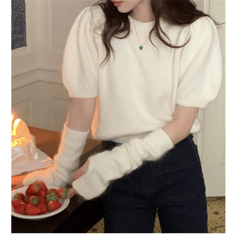 韩版袖套泡泡袖毛衣女秋冬春装新款设计感小众针织内搭打底衫上衣