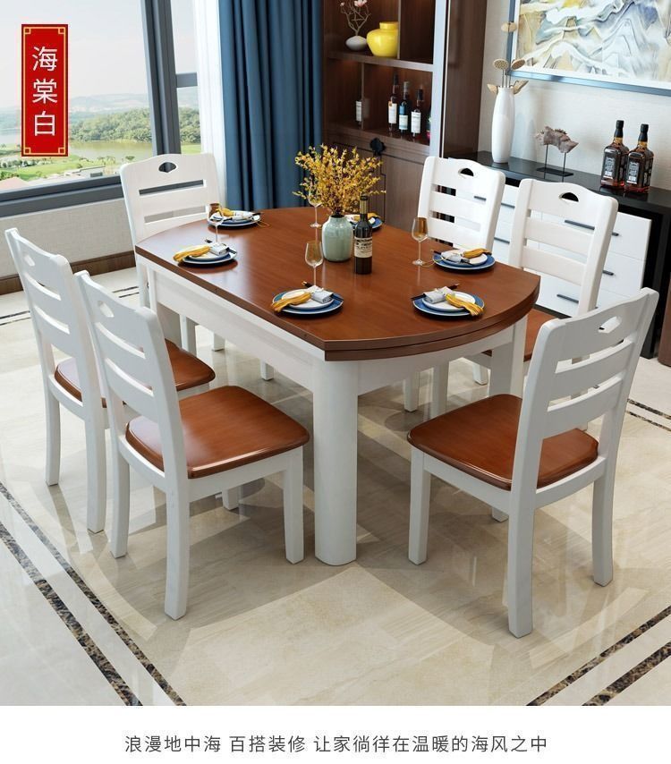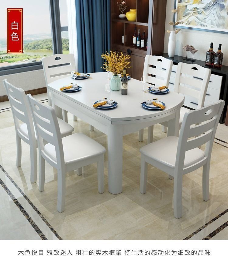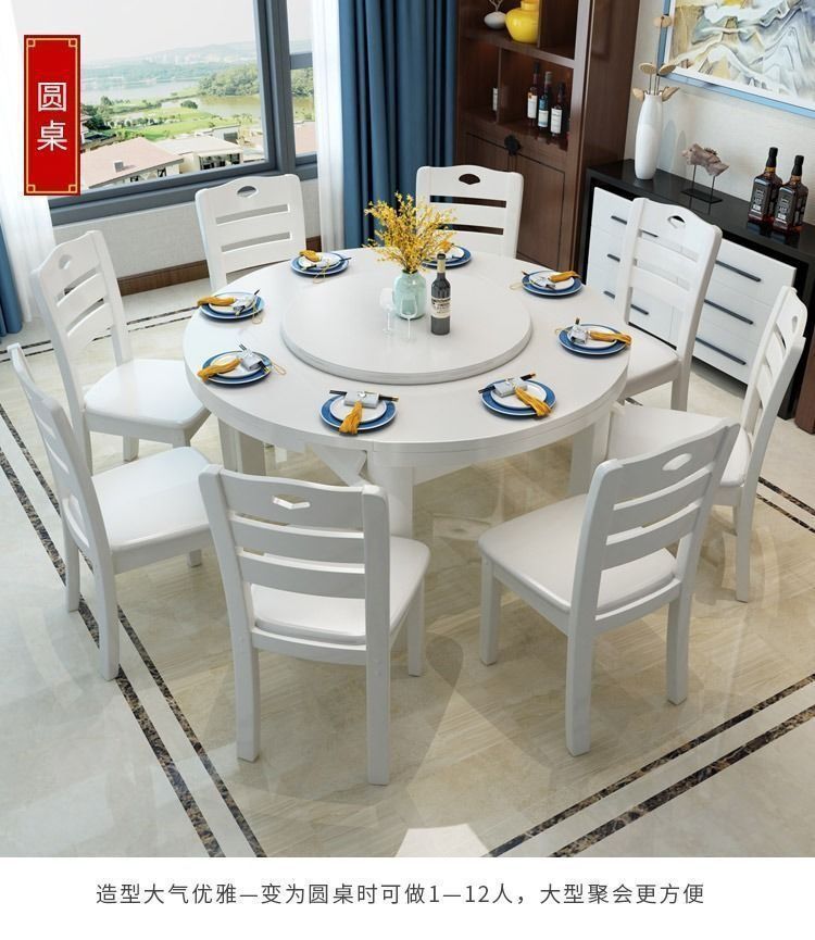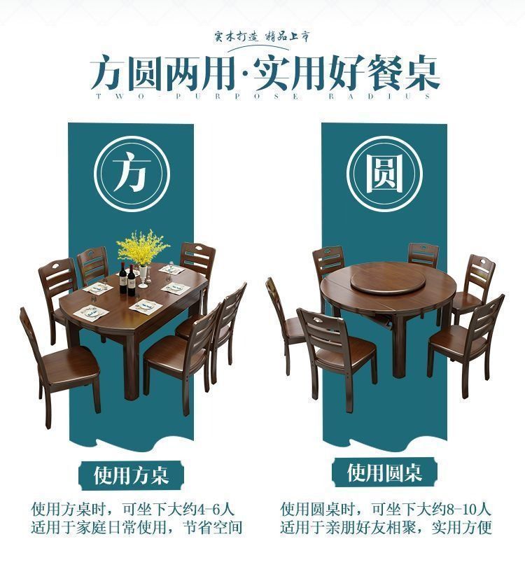 实木餐桌椅组合方圆两用带转盘小户型家用饭店可伸缩折叠吃饭桌子