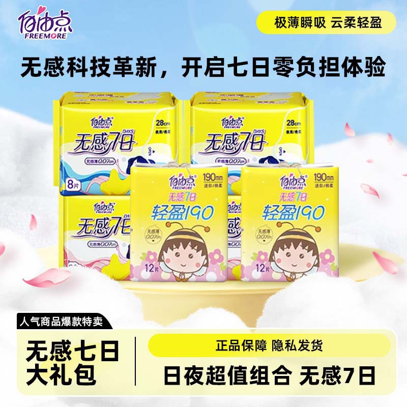 フリーポイント 無感覚7日用生理用ナプキン 超薄型 通気性抜群 濡れにくい 生理用ナプキン 日用・夜用セット 公式正規品