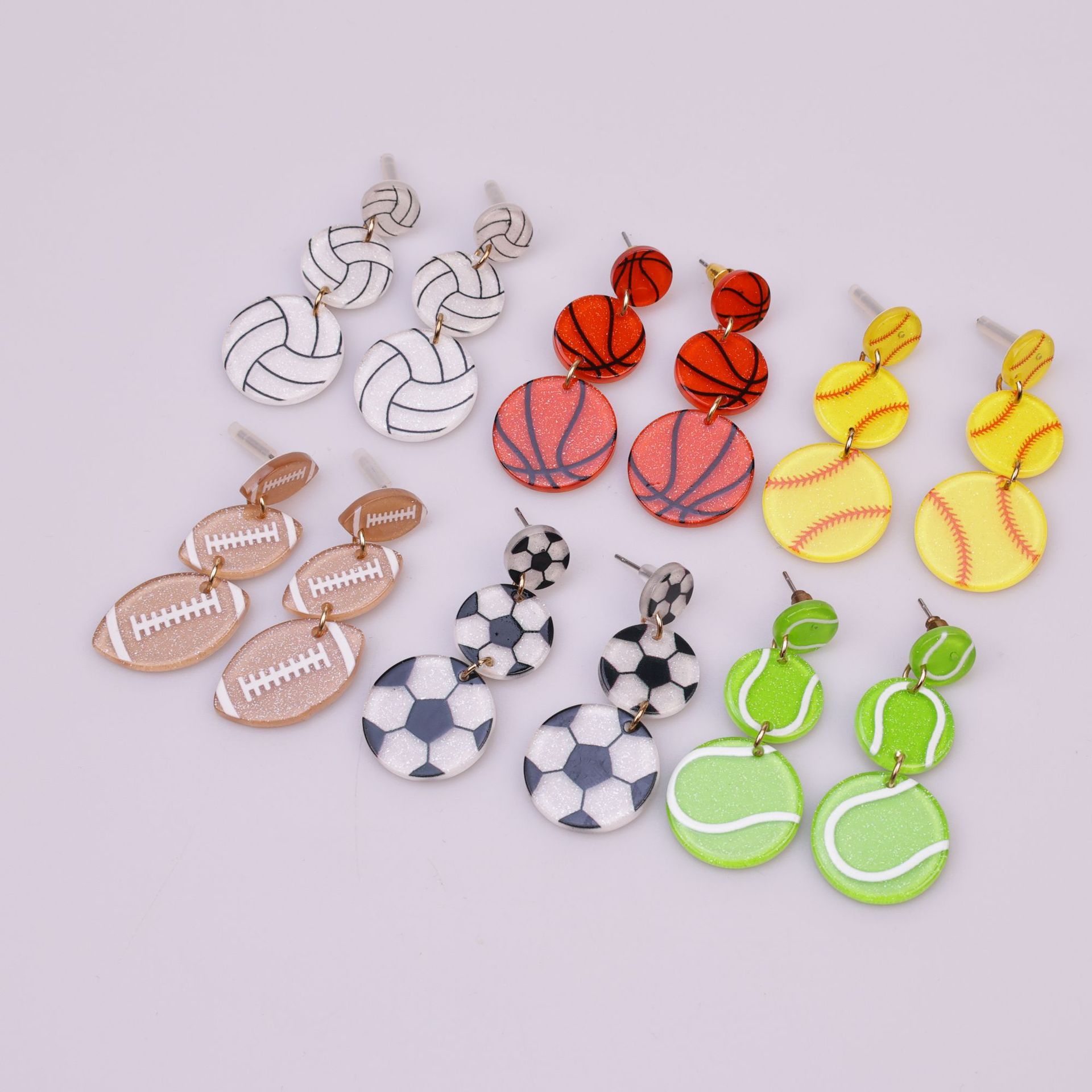 简约时尚印花亚克力篮球耳坠个性百搭小众设计ins运动风女耳饰品