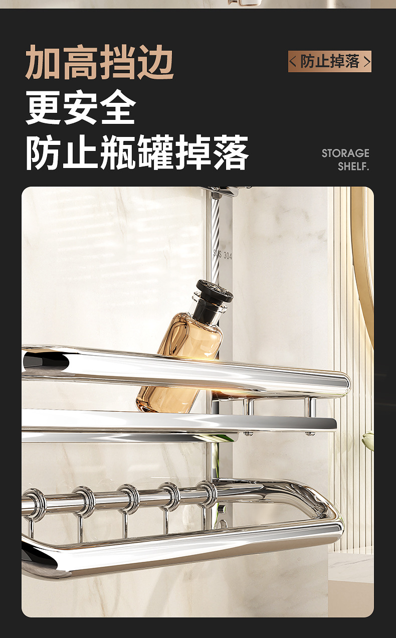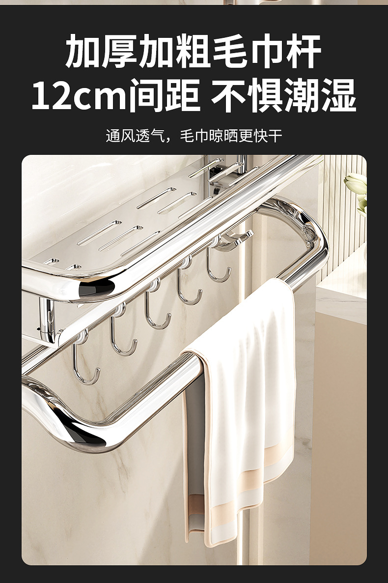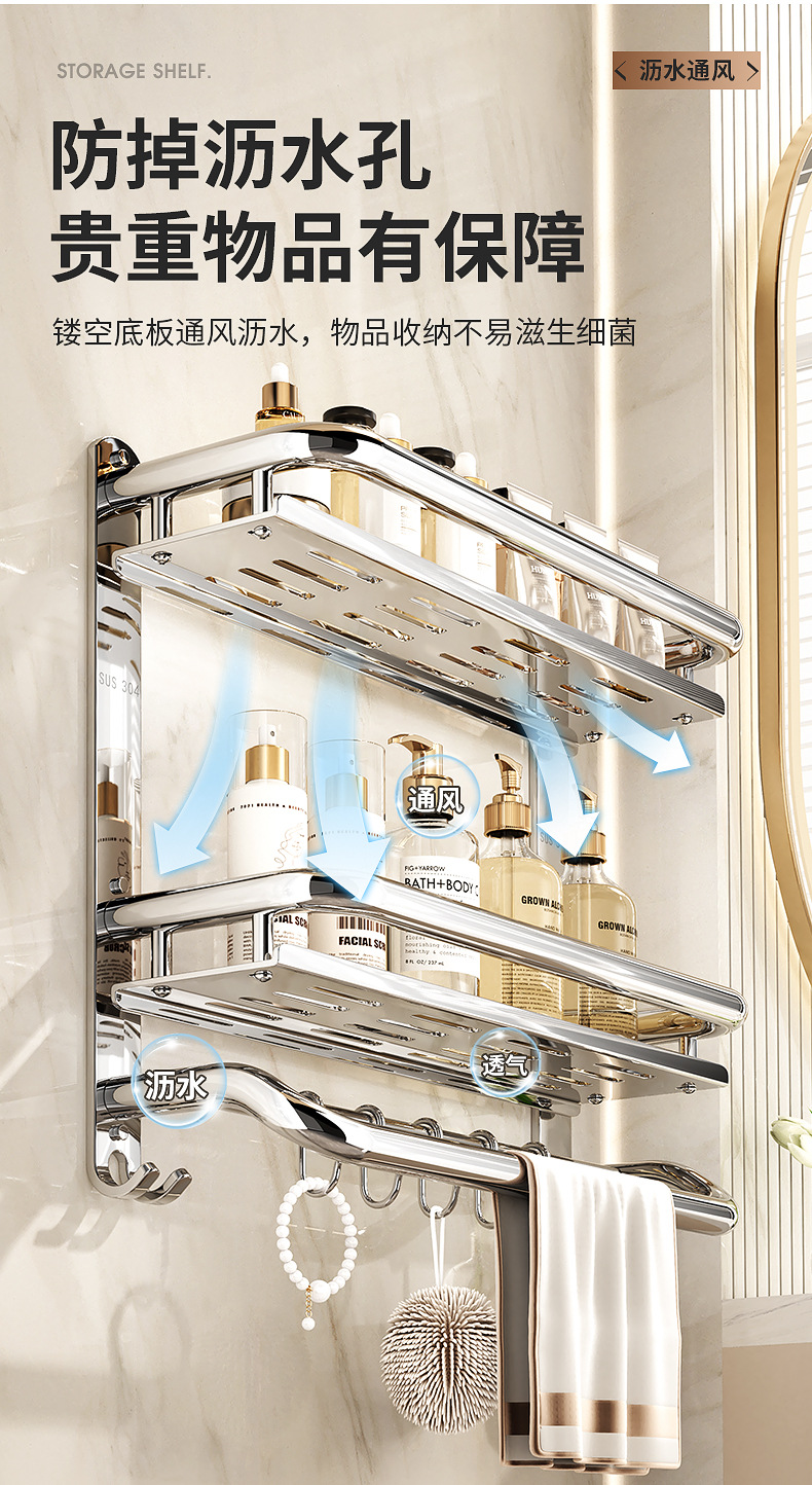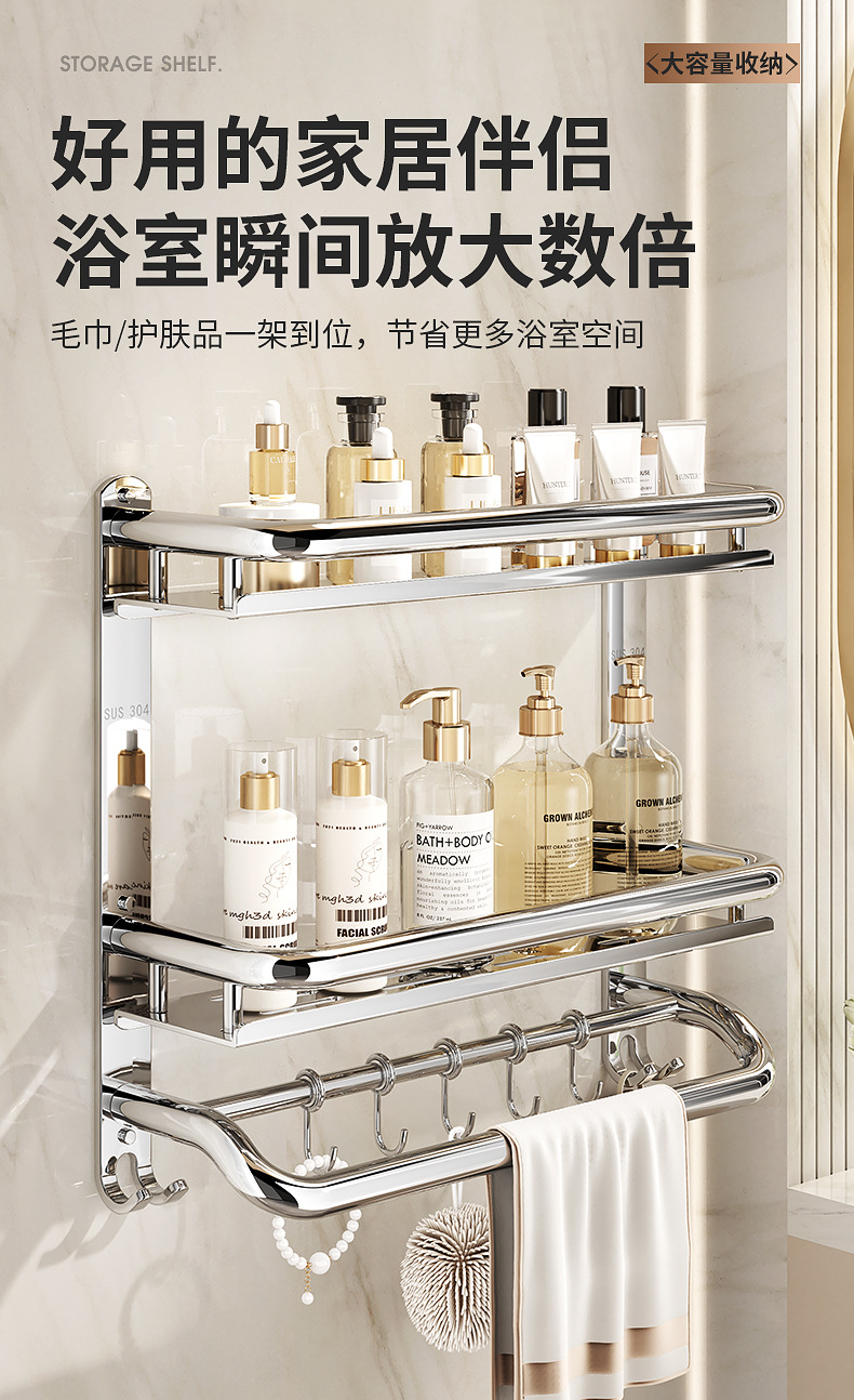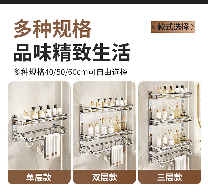 304不锈钢浴室置物架卫生间免打孔壁挂式放置架收纳架厕所毛巾架