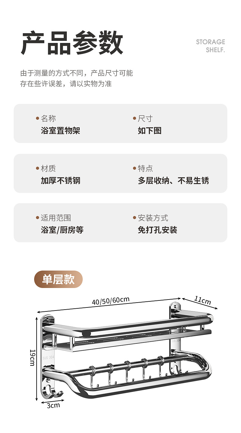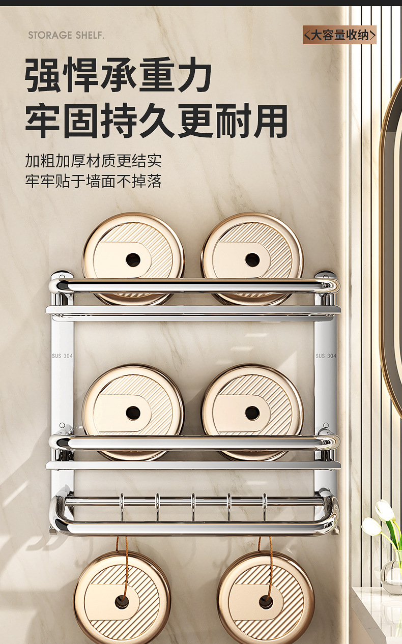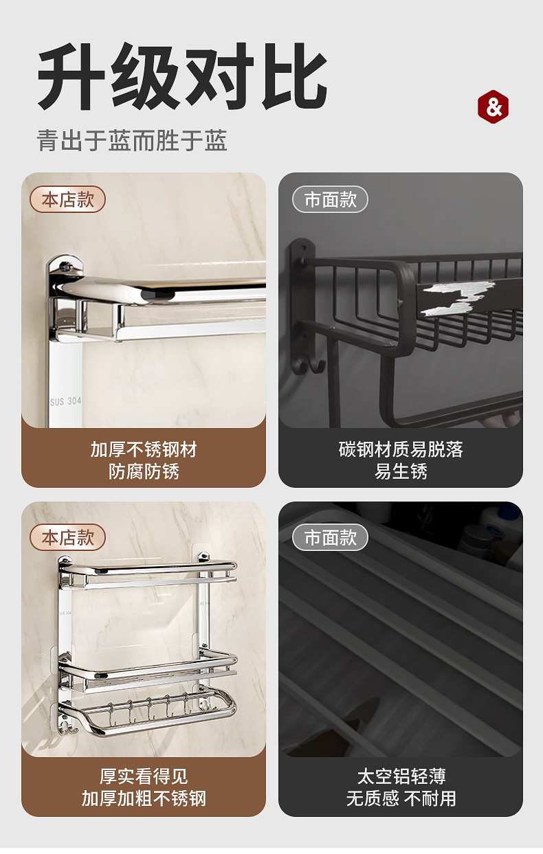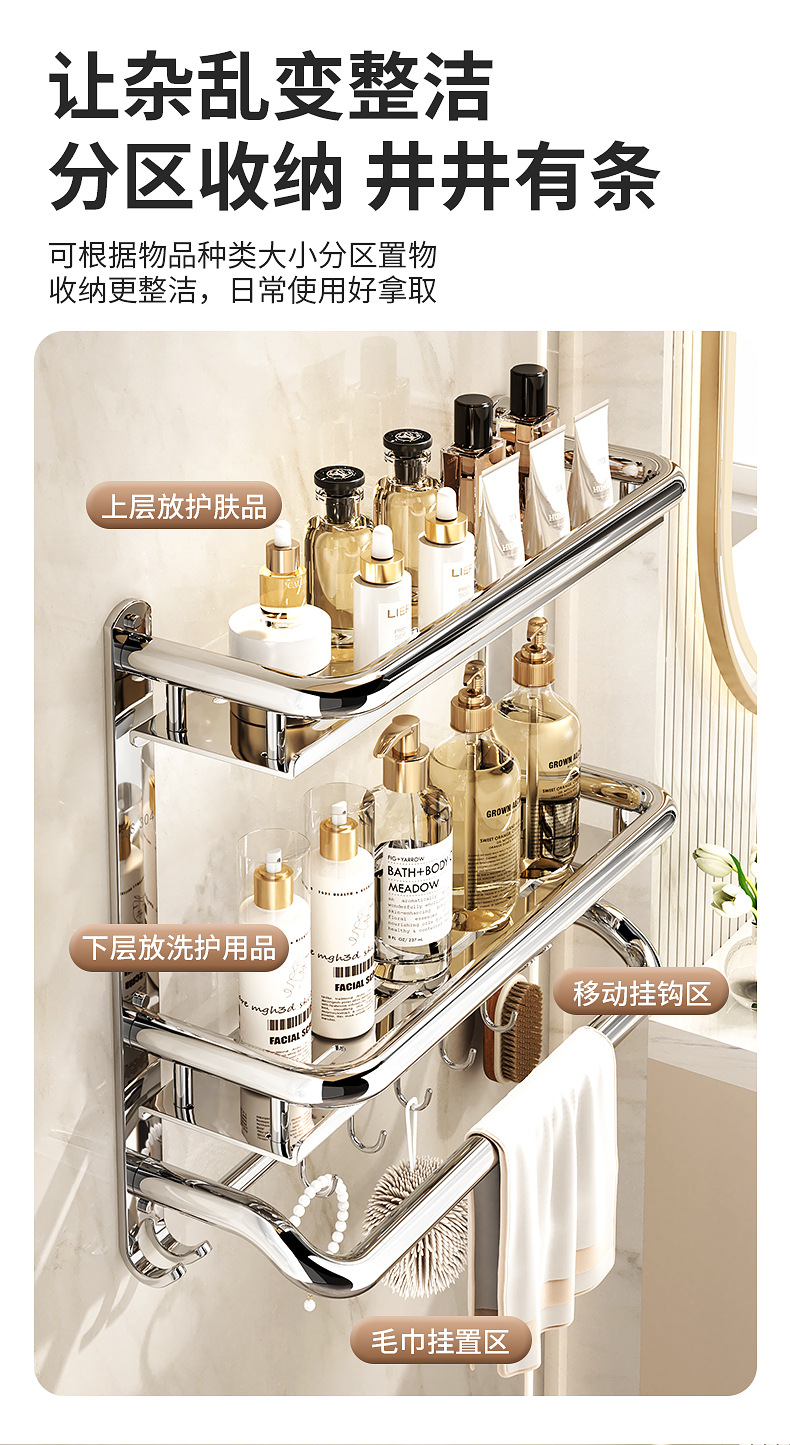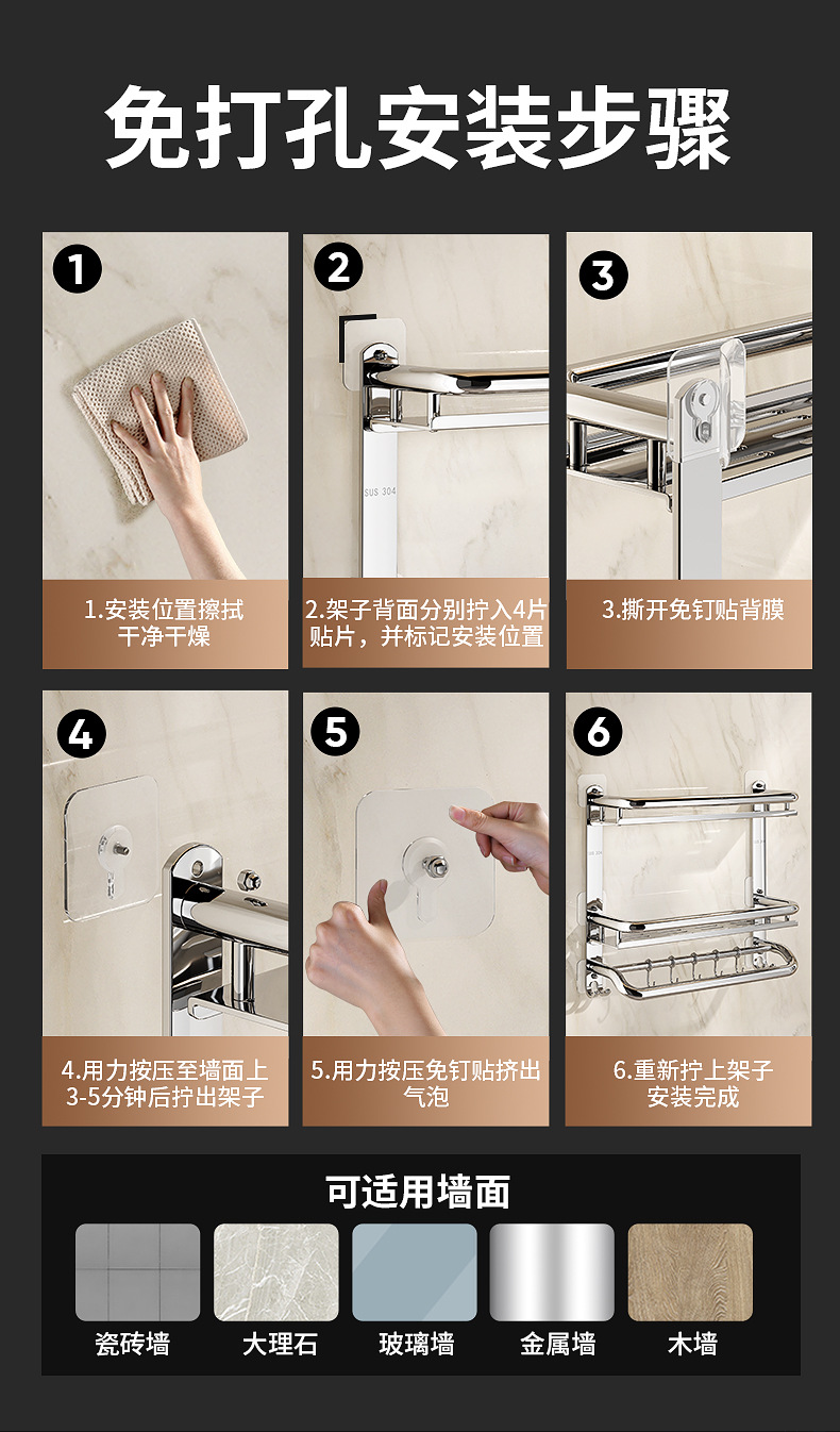 304不锈钢浴室置物架卫生间免打孔壁挂式放置架收纳架厕所毛巾架