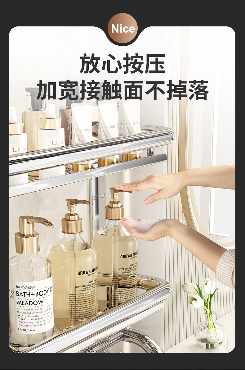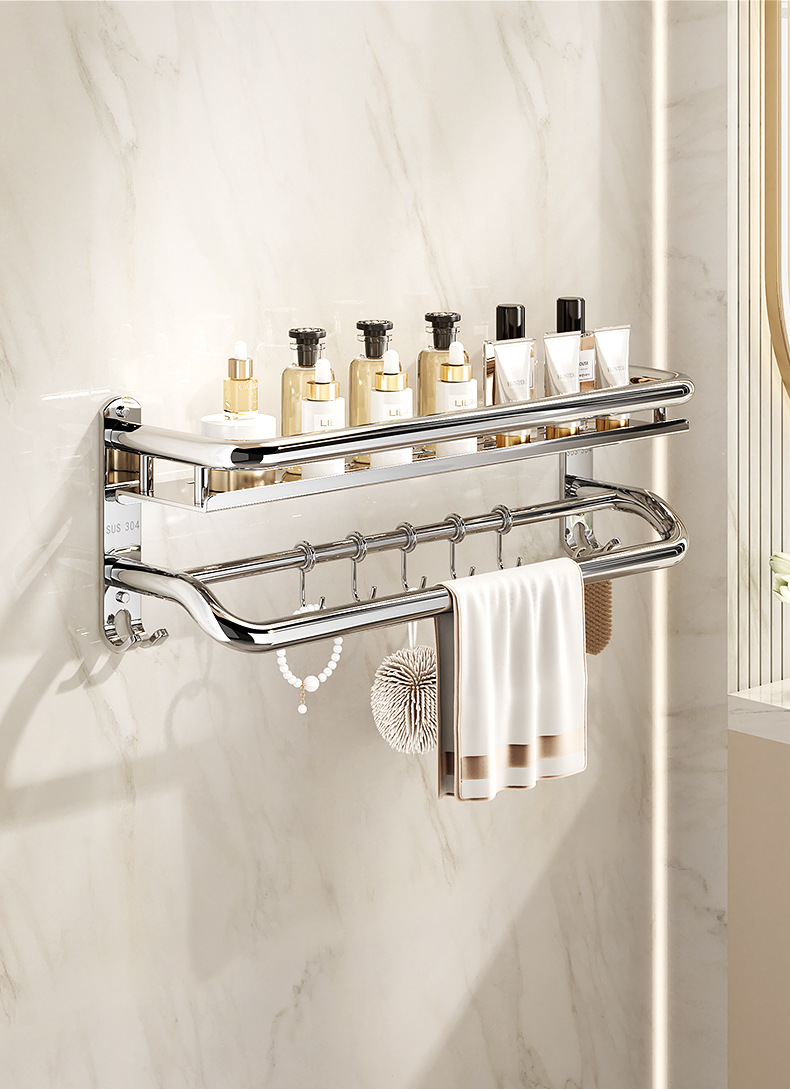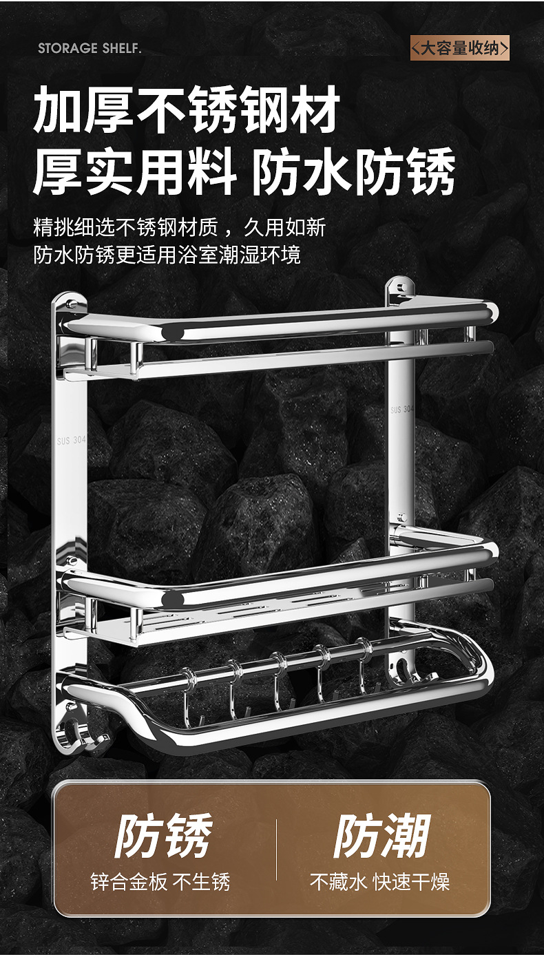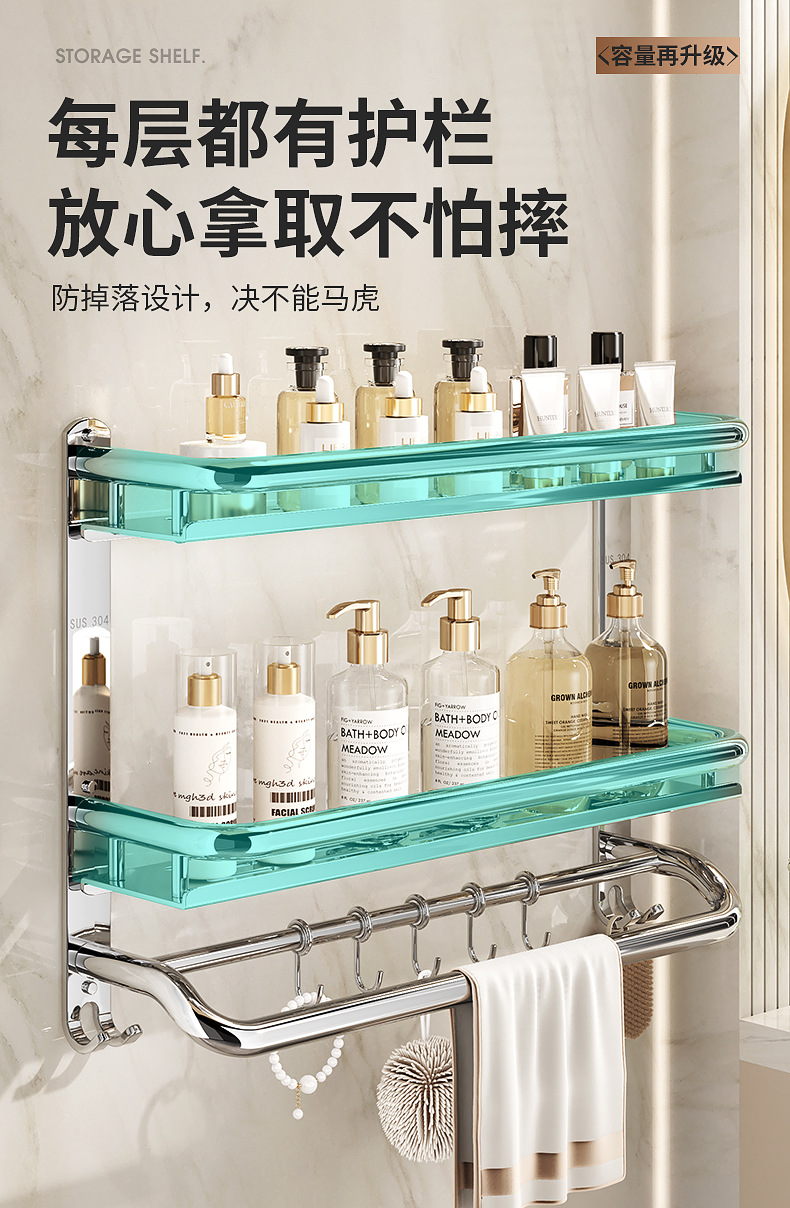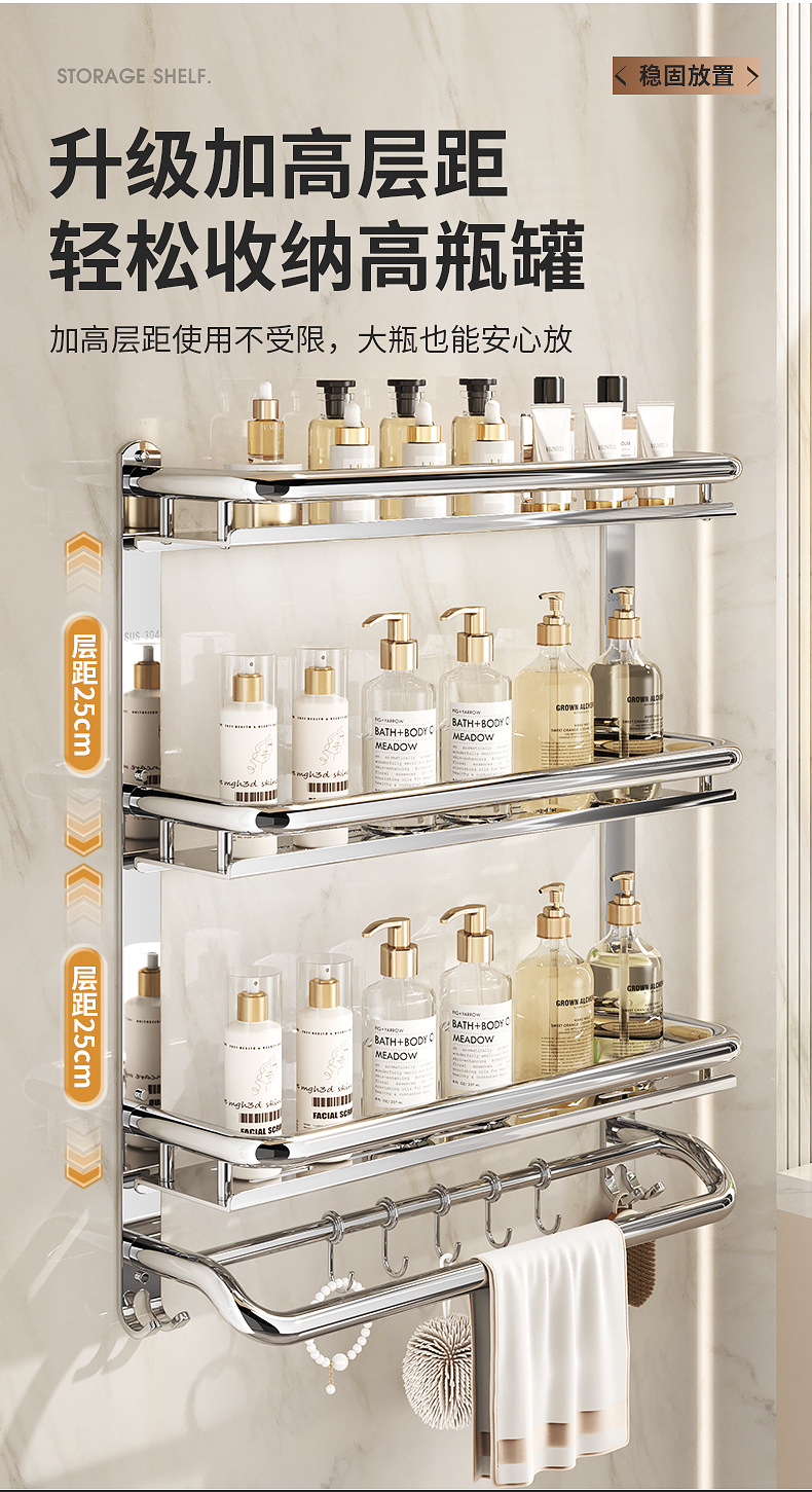 304不锈钢浴室置物架卫生间免打孔壁挂式放置架收纳架厕所毛巾架