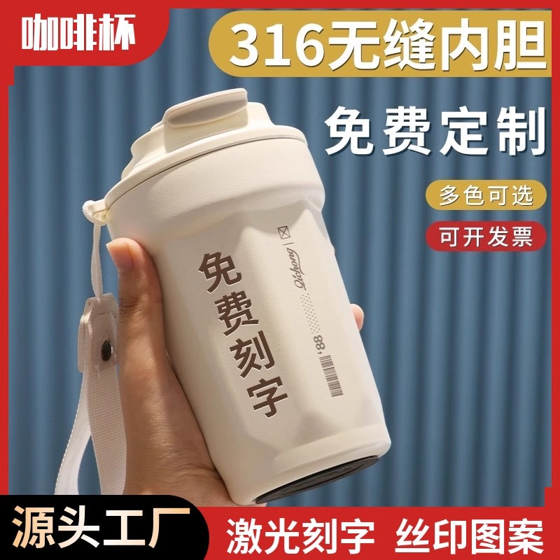 高颜值316不锈钢保温杯大容量水杯轻奢高级感户外便携吊带杯子