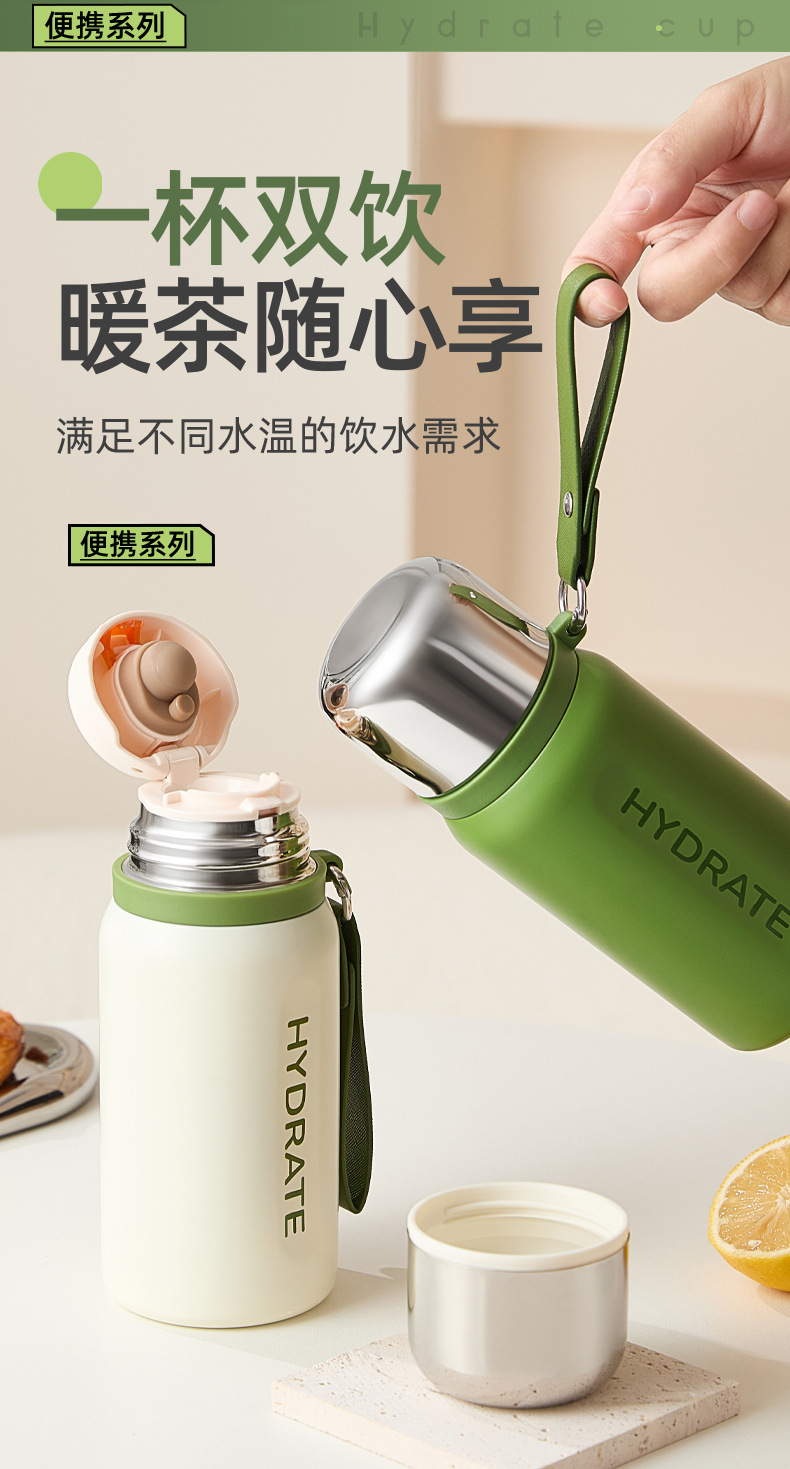食品級316ステンレス保温カップ1杯2蓋男性女性屋外携帯大容量茶水分離カップ