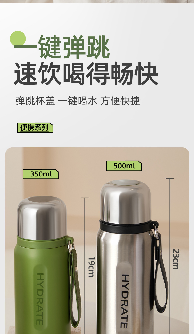 316不锈钢保温杯办公礼品杯大容量一盖双用户外吊带壶商务运动杯