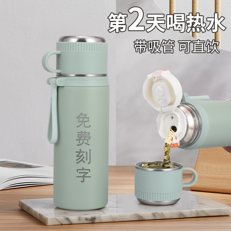 316不锈钢保温杯办公礼品杯大容量一盖双用户外吊带壶商务定 制