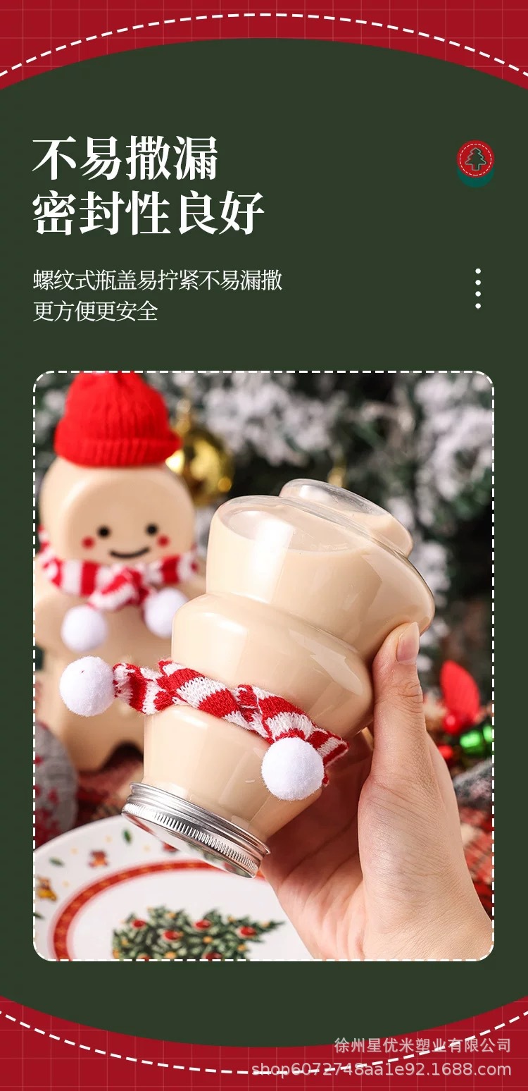 400ml姜パイ人哺乳茶瓶雪だるまクリスマスツリーミルクティーカップ一度に蓋付き透明petペットボトル