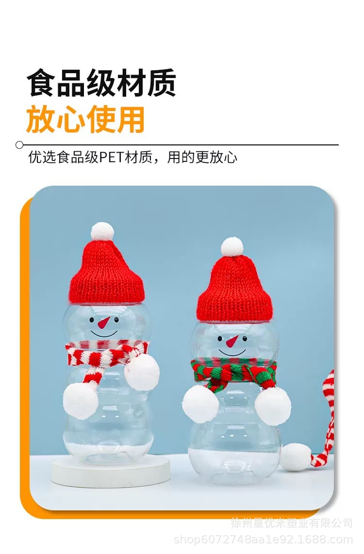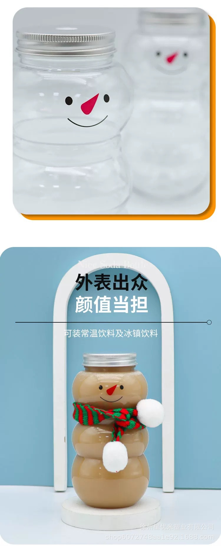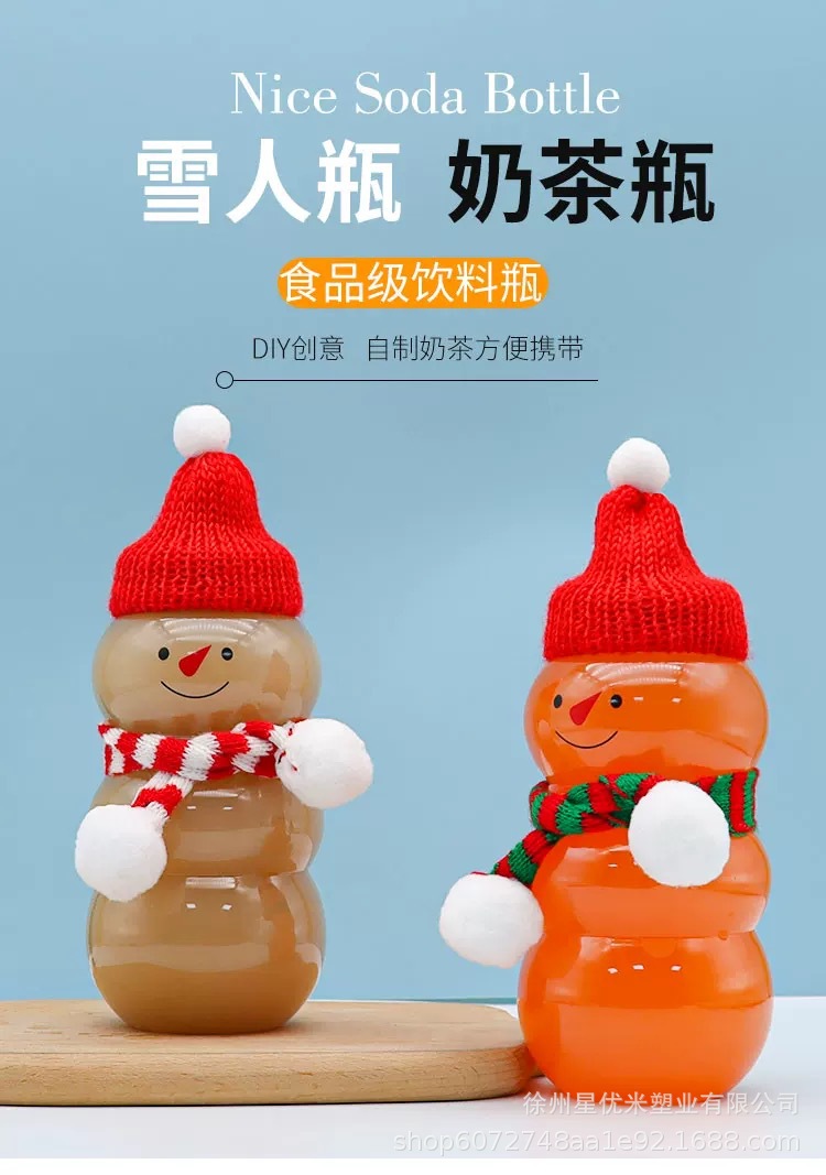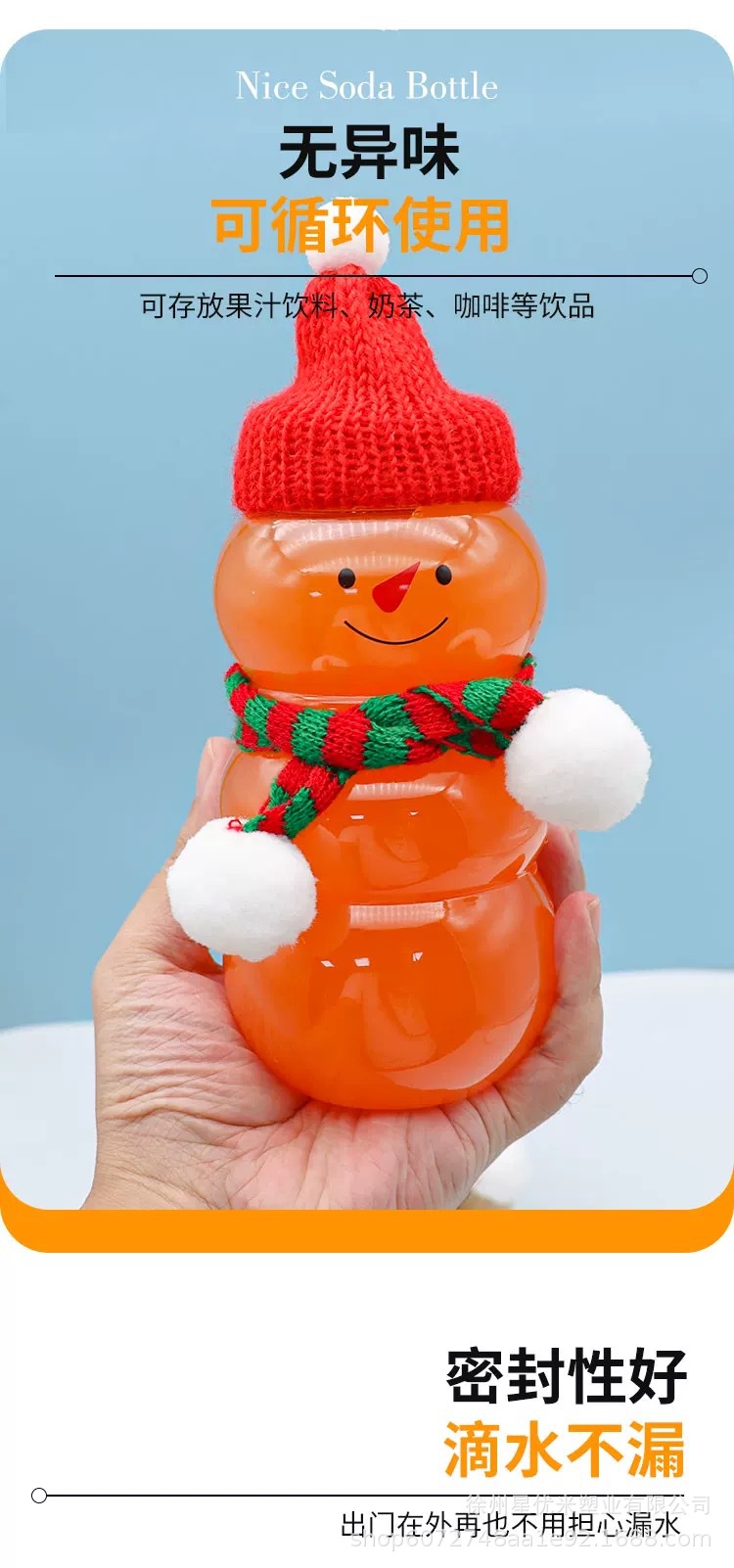 新款圣诞雪人奶茶瓶pet姜饼人圣诞树果汁饮料瓶500ml咖啡奶茶杯