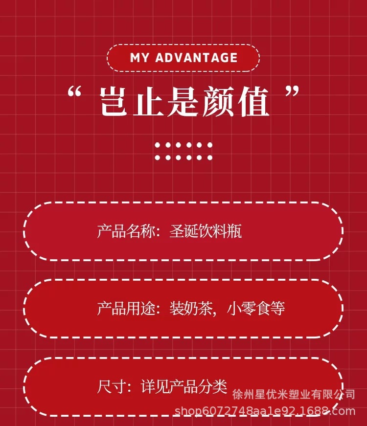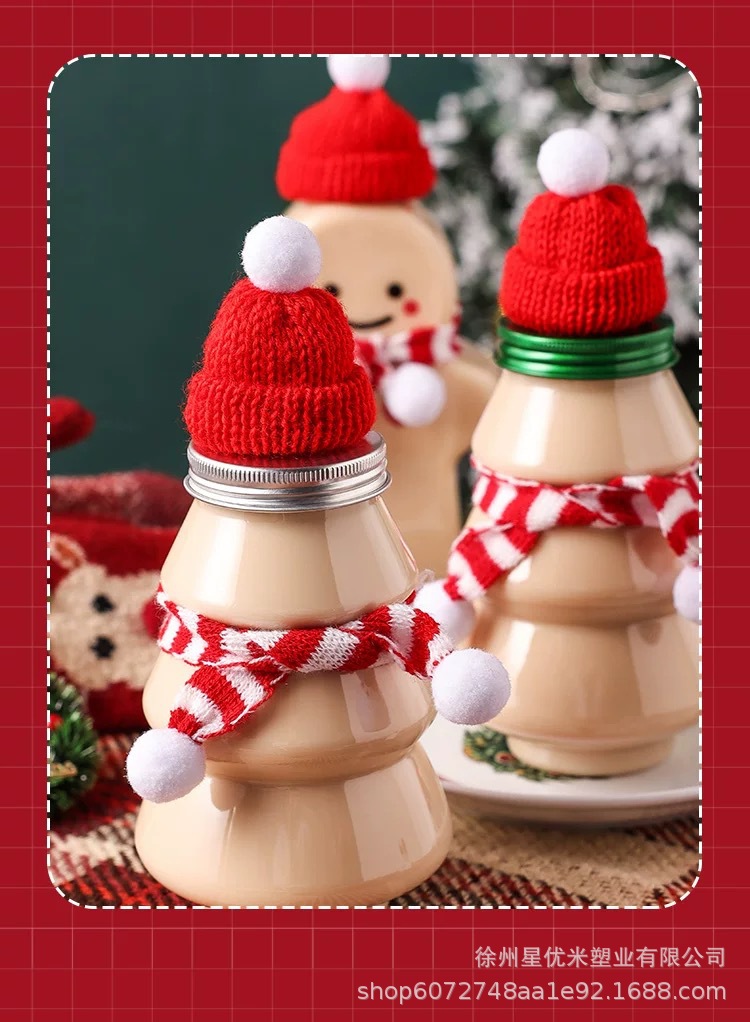 圣诞红盖姜饼人雪人奶茶瓶松树圣诞树塑料瓶卡通小熊创意果汁瓶