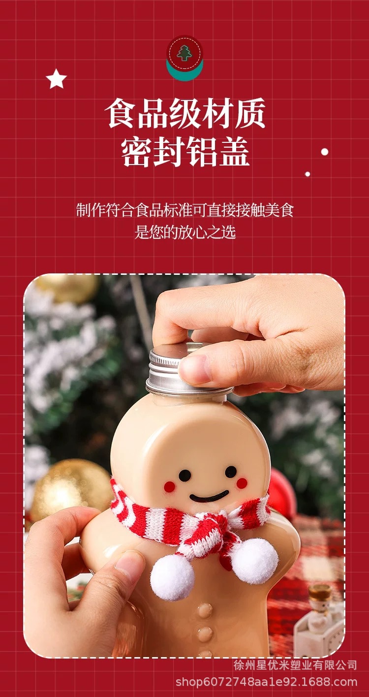 現物姜パイ人哺乳茶瓶500mlネット赤創意クリスマス装飾プラスチック瓶漫画ビスケット人ジュース瓶