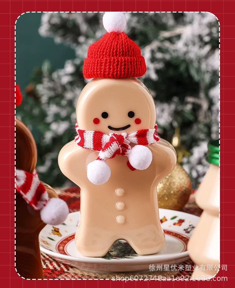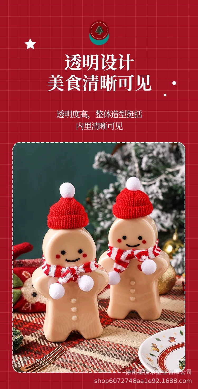 圣诞节姜饼人奶茶杯圣诞树雪人果汁饮料瓶卡通围巾帽子带盖塑料瓶