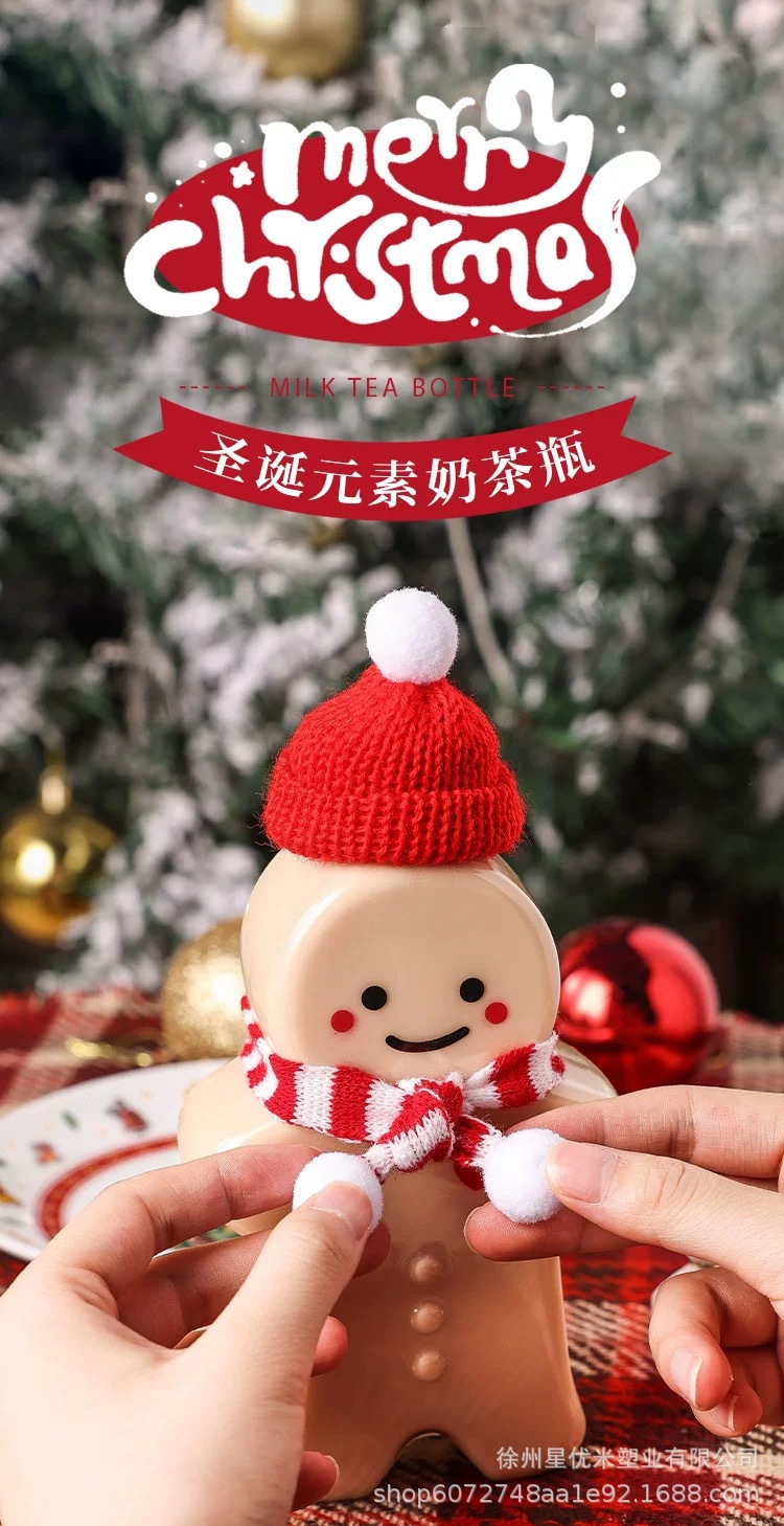 漫画ジンジャーブレッドマンミルクティーカップ特殊形状ペットボトル使い捨てジュース飲料ボトルクリスマスペットテイクアウトミルクティーボトル