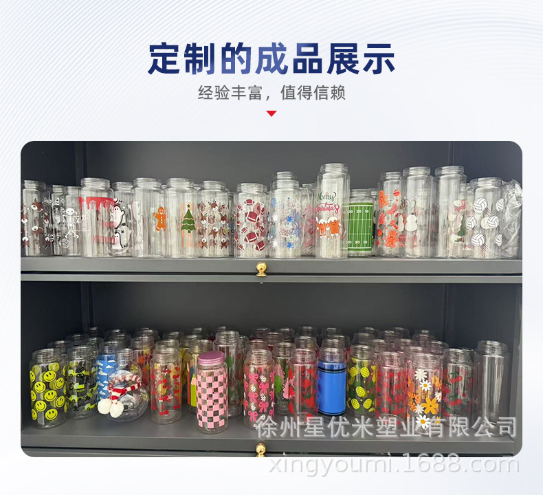 圣诞小熊奶茶杯卡通塑料瓶动物创意果汁饮料瓶零食收纳糖果罐pet