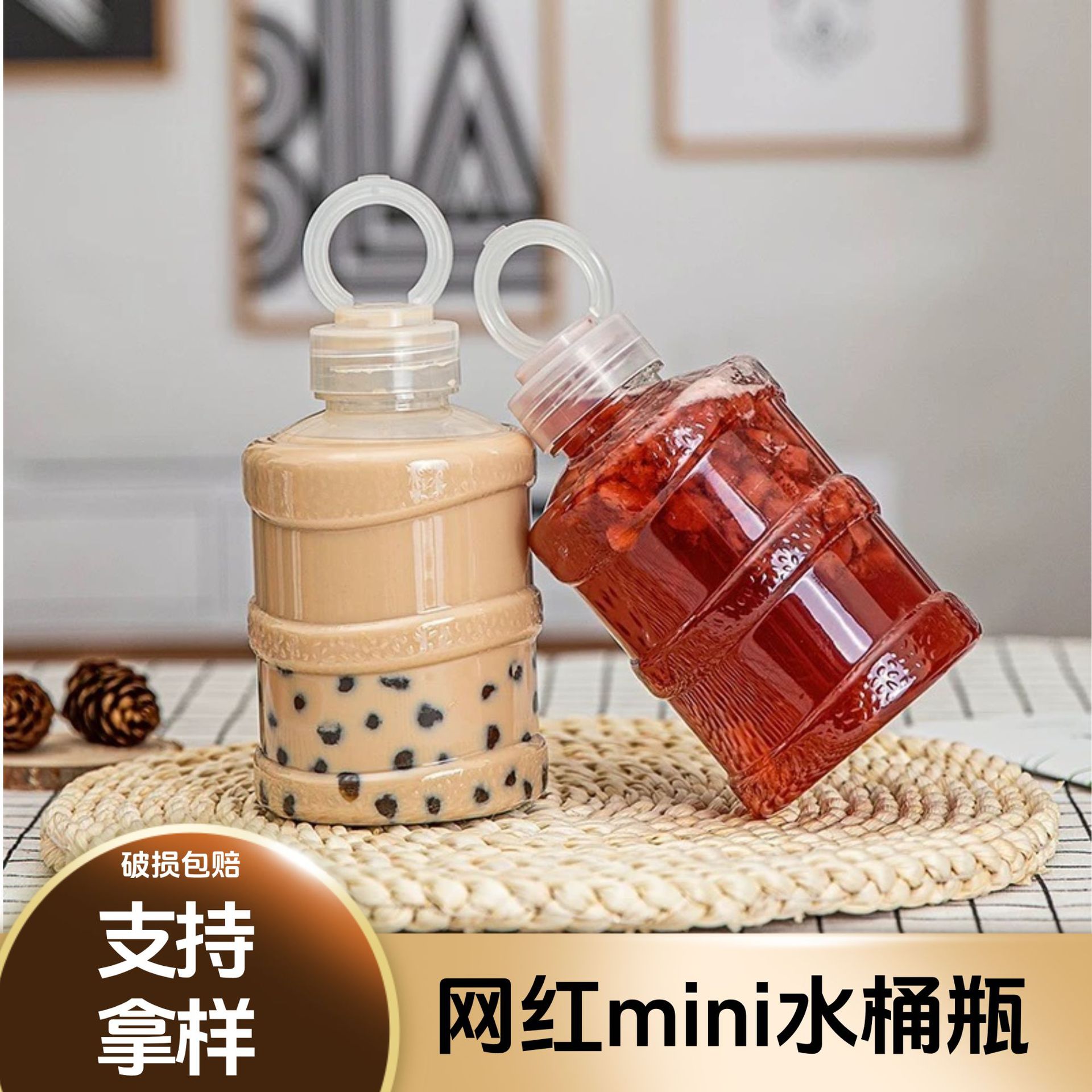 手提水桶瓶拉环迷你奶茶杯胖胖桶羽衣纤体瓶食品级透明塑料冷饮杯