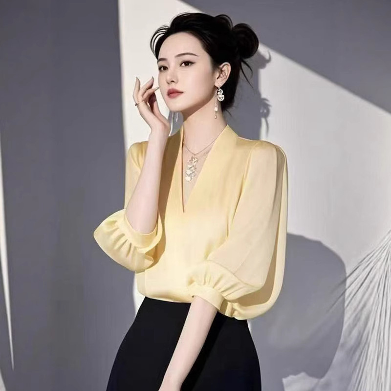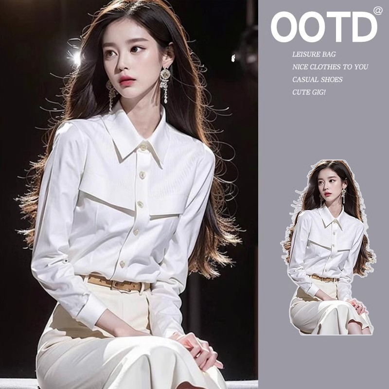 長袖の白いシャツの女性の金の2024年の新型の気質の小さいシャツの独特で独特な高級感の爆発の早秋の上着