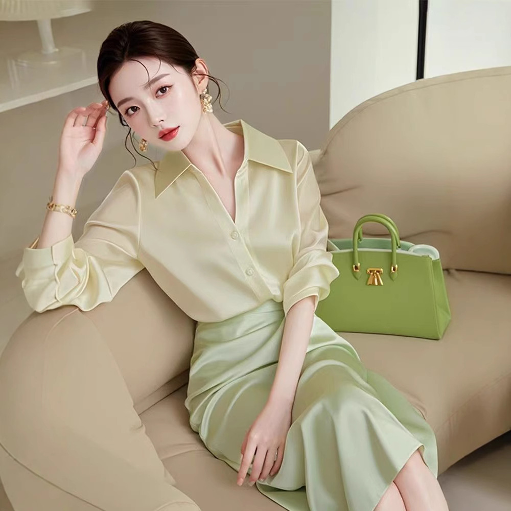 上品できちんとした高級感とaと颯純色シャツの2枚のスーツのスカートの婦人服の春の2025の新型