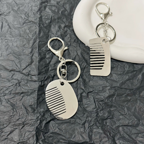跨境梳子钛钢钥匙扣汽车钥匙链包包小挂件配饰小众设计感简约风