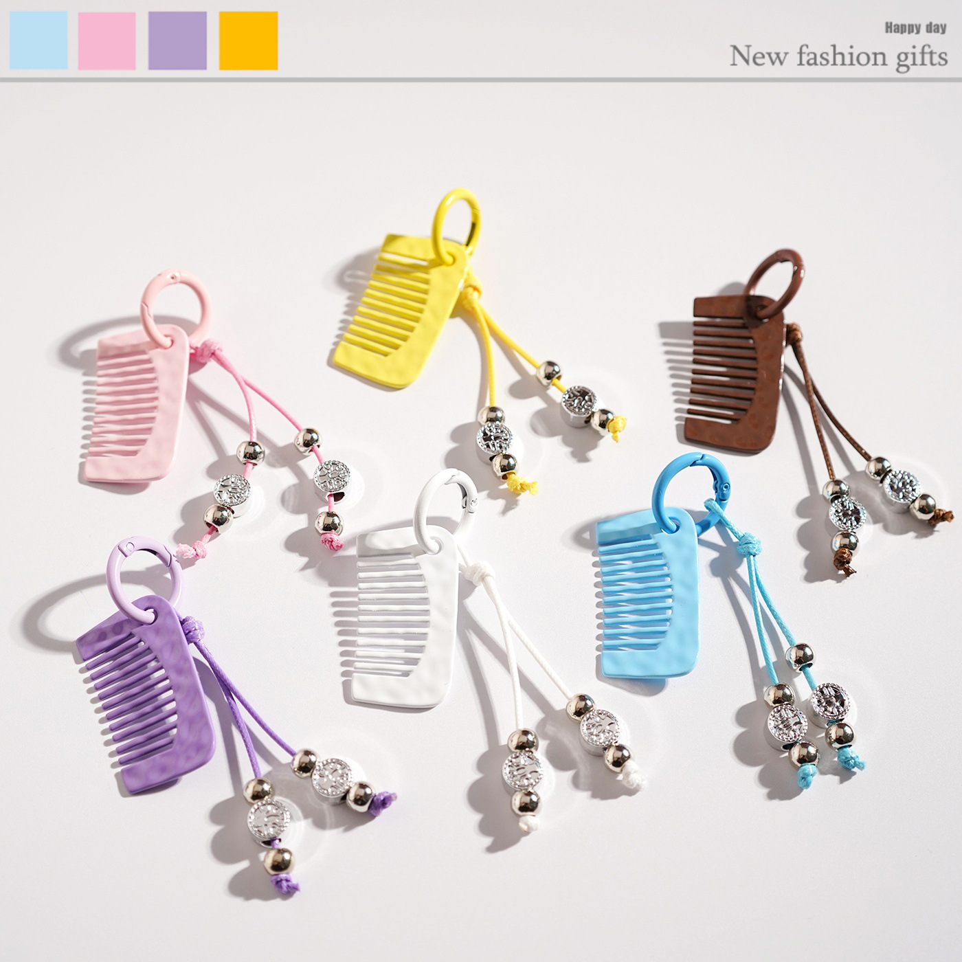 韩国合金轻奢梳子钥匙扣可爱时尚挂件便携小梳子配饰汽车包包挂饰