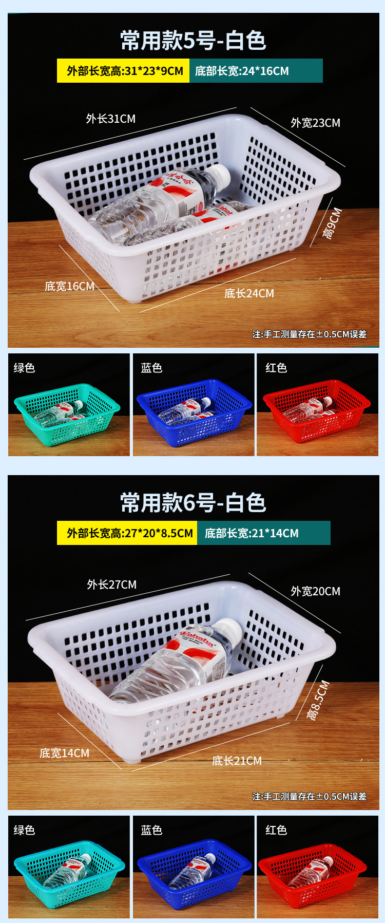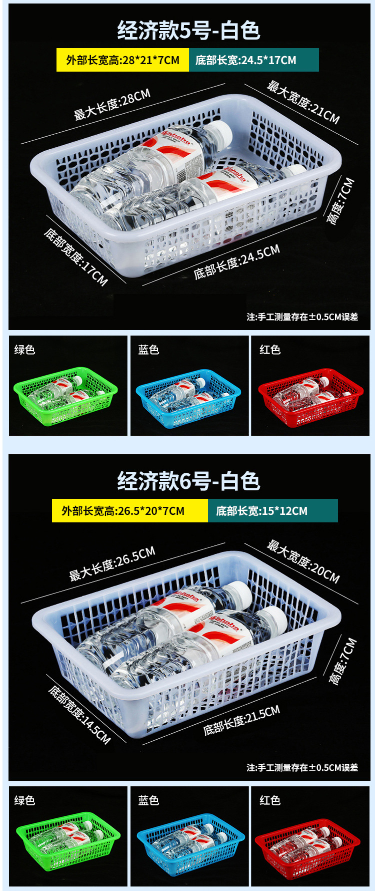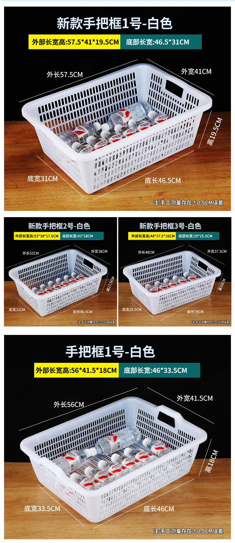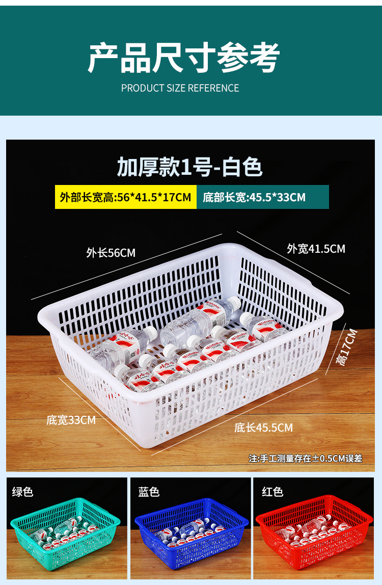 常用款6号白色【长27*宽20*高8.5】,常用款6号红色【长27*宽20*高8.5】,常用款6号蓝色【长27*宽20*高8.5】,常用款6号绿色【长27*宽20*高8.5】,常用款5号白色【长31*宽23*高9】,常用款5号红色【长31*宽23*高9】,常用款5号蓝色【长31*宽23*高9】,常用款5号绿色【长31*宽23*高9】,常用款4号白色【长35*宽26.5*高10】,常用款4号红色【长35*宽26.5*高10】,常用款4号蓝色【长35*宽26.5*高10】,常用款4号绿色【长35*宽26.5*高10】,常用款3号白色【长39*宽29.5*高11.5】,常用款3号红色【长39*宽29.5*高11.5】,常用款3号蓝色【长39*宽29.5*高11.5】,常用款3号绿色【长39*宽29.5*高11.5】,常用款2号白色【长43.5*宽34*高12.5】,常用款2号红色【长43.5*宽34*高12.5】,常用款2号蓝色【长43.5*宽34*高12.5】,常用款2号绿色【长43.5*宽34*高12.5】,常用款1号白色【长48.5*宽38*高14.5】,常用款1号红色【长48.5*宽38*高14.5】,常用款1号蓝色【长48.5*宽38*高14.5】,常用款1号绿色【长48.5*宽38*高14.5】,加厚款7号白色【长27*宽19.5*高8.5】,加厚款7号红色【长27*宽19.5*高8.5】,加厚款7号绿色【长27*宽19.5*高8.5】,加厚款7号蓝色【长27*宽19.5*高8.5】,加厚款6号白色【长31.5*宽23.5*高9.5】,加厚款6号红色【长31.5*宽23.5*高9.5】,加厚款6号蓝色【长31.5*宽23.5*高9.5】,加厚款6号绿色【长31.5*宽23.5*高9.5】,加厚款5号白色【长36*宽27*高10】,加厚款5号红色【长36*宽27*高10】,加厚款5号蓝色【长36*宽27*高10】,加厚款5号绿色【长36*宽27*高10】,加厚款4号白色【长39.5*宽30.5*高12】,加厚款4号红色【长39.5*宽30.5*高12】,加厚款4号蓝色【长39.5*宽30.5*高12】,加厚款4号绿色【长39.5*宽30.5*高12】,加厚款3号白色【长44*宽35*高13】,加厚款3号红色【长44*宽35*高13】,加厚款3号蓝色【长44*宽35*高13】,加厚款3号绿色【长44*宽35*高13】,加厚款2号白色【长50*宽39*高16.5】,加厚款2号红色【长50*宽39*高16.5】,加厚款2号蓝色【长50*宽39*高16.5】,加厚款2号绿色【长50*宽39*高16.5】,加厚款1号白色【长56*宽41.5*高17】,加厚款1号红色【长56*宽41.5*高17】,加厚款1号蓝色【长56*宽41.5*高17】,加厚款1号绿色【长56*宽41.5*高17】,手把款4号白色【长43.5*宽32.5*高14.5】,手把款3号白色【长49.5*宽37*高15.5】,手把款2号白色【长53*宽38*高16.5】,手把款1号白色【长56*宽41.5*高18】,新款手把款3号白色【长48*宽33.5*高16】,新款手把款2号白色【长53*宽38*高17.5】,新款手把款1号白色【长57.5*宽41*高19.5】,密眼款4号白色【长38*宽26*高13】,密眼款3号白色【长43*宽30.5*高15】,密眼款2号白色【长49.5*宽36*高17】,密眼款1号白色【长55.5*宽42*高19】,特厚款5号白色【长30.5*宽25.5*高11.5】,特厚款4号白色【长36.5*宽27*高13】,特厚款3号白色【长42.5*宽32*高15.5】,特厚款2号白色【长49*37*高17.5】,特厚款1号白色【长56.5*宽42.5*高19】,特厚彩筐号3号蓝色(长44宽34高13)厘米