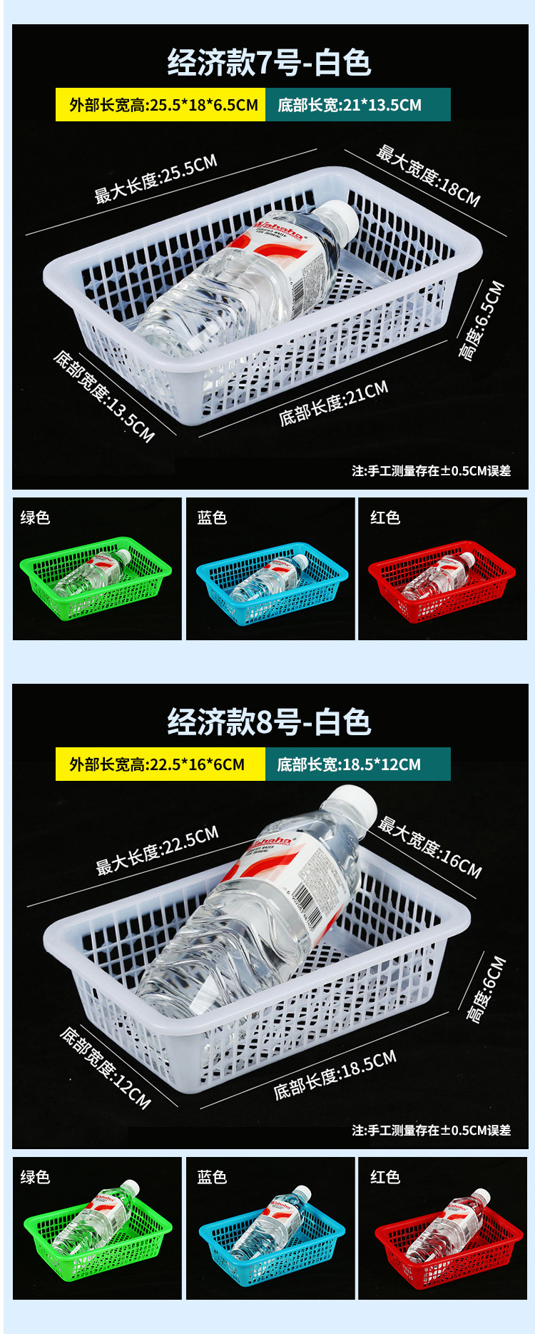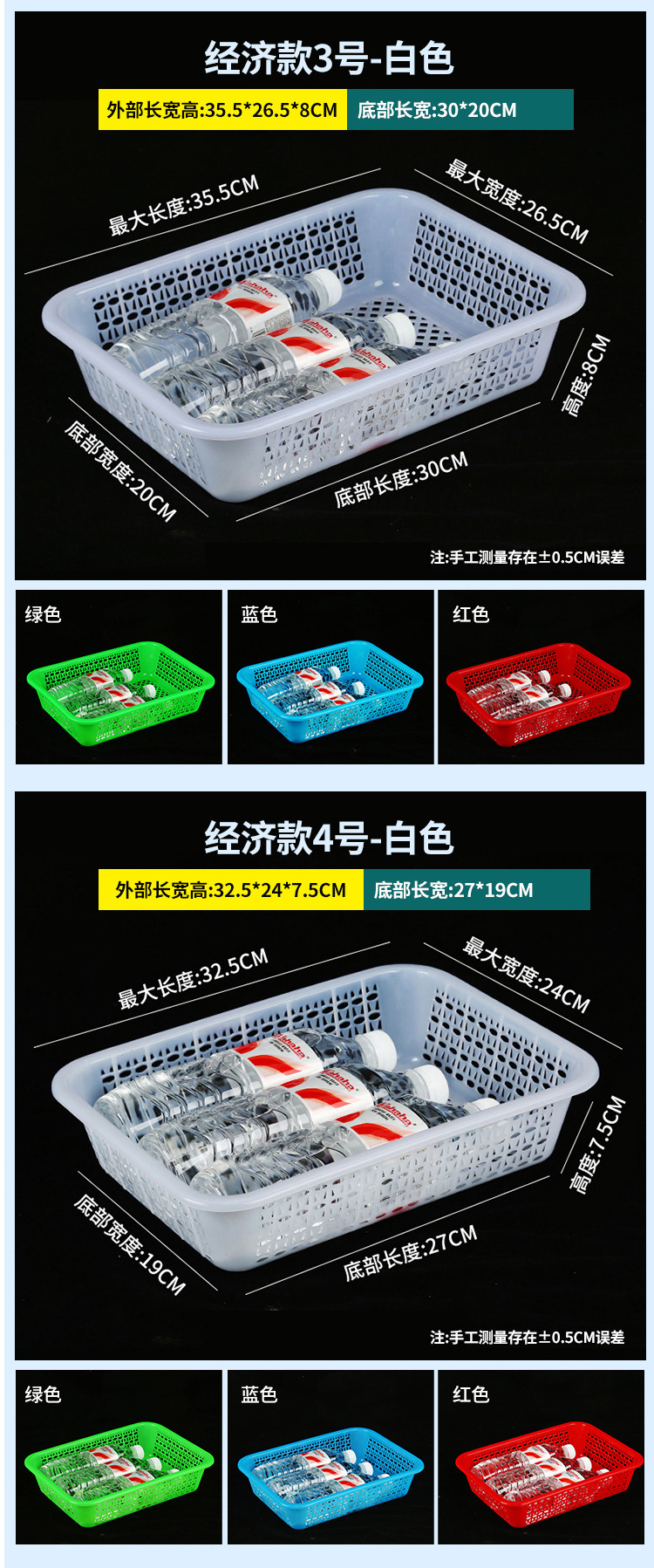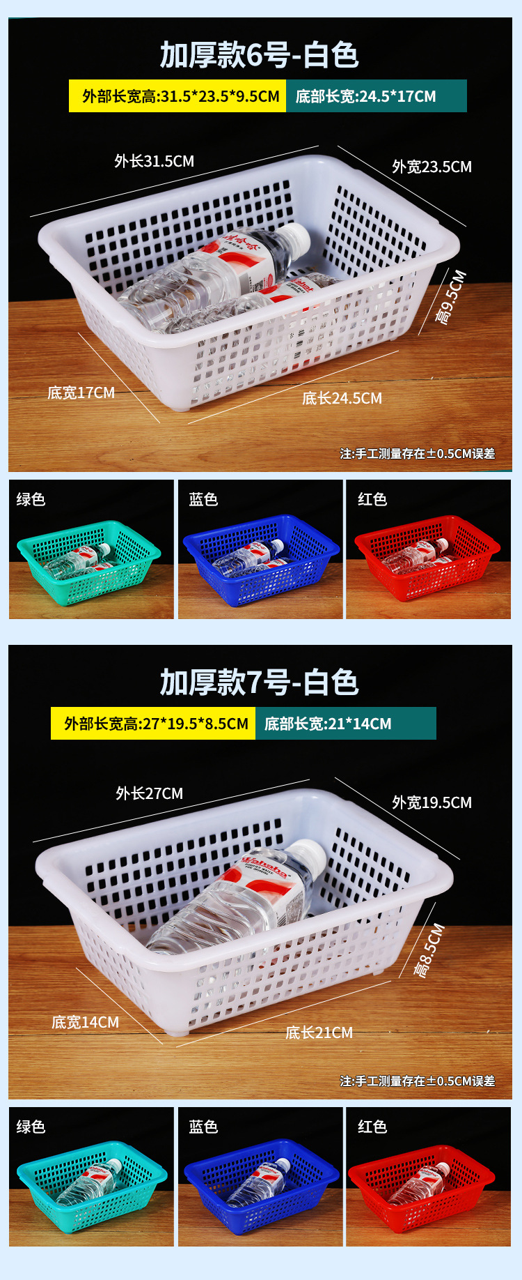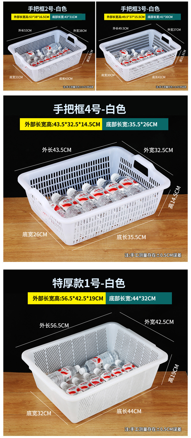 常用款6号白色【长27*宽20*高8.5】,常用款6号红色【长27*宽20*高8.5】,常用款6号蓝色【长27*宽20*高8.5】,常用款6号绿色【长27*宽20*高8.5】,常用款5号白色【长31*宽23*高9】,常用款5号红色【长31*宽23*高9】,常用款5号蓝色【长31*宽23*高9】,常用款5号绿色【长31*宽23*高9】,常用款4号白色【长35*宽26.5*高10】,常用款4号红色【长35*宽26.5*高10】,常用款4号蓝色【长35*宽26.5*高10】,常用款4号绿色【长35*宽26.5*高10】,常用款3号白色【长39*宽29.5*高11.5】,常用款3号红色【长39*宽29.5*高11.5】,常用款3号蓝色【长39*宽29.5*高11.5】,常用款3号绿色【长39*宽29.5*高11.5】,常用款2号白色【长43.5*宽34*高12.5】,常用款2号红色【长43.5*宽34*高12.5】,常用款2号蓝色【长43.5*宽34*高12.5】,常用款2号绿色【长43.5*宽34*高12.5】,常用款1号白色【长48.5*宽38*高14.5】,常用款1号红色【长48.5*宽38*高14.5】,常用款1号蓝色【长48.5*宽38*高14.5】,常用款1号绿色【长48.5*宽38*高14.5】,加厚款7号白色【长27*宽19.5*高8.5】,加厚款7号红色【长27*宽19.5*高8.5】,加厚款7号绿色【长27*宽19.5*高8.5】,加厚款7号蓝色【长27*宽19.5*高8.5】,加厚款6号白色【长31.5*宽23.5*高9.5】,加厚款6号红色【长31.5*宽23.5*高9.5】,加厚款6号蓝色【长31.5*宽23.5*高9.5】,加厚款6号绿色【长31.5*宽23.5*高9.5】,加厚款5号白色【长36*宽27*高10】,加厚款5号红色【长36*宽27*高10】,加厚款5号蓝色【长36*宽27*高10】,加厚款5号绿色【长36*宽27*高10】,加厚款4号白色【长39.5*宽30.5*高12】,加厚款4号红色【长39.5*宽30.5*高12】,加厚款4号蓝色【长39.5*宽30.5*高12】,加厚款4号绿色【长39.5*宽30.5*高12】,加厚款3号白色【长44*宽35*高13】,加厚款3号红色【长44*宽35*高13】,加厚款3号蓝色【长44*宽35*高13】,加厚款3号绿色【长44*宽35*高13】,加厚款2号白色【长50*宽39*高16.5】,加厚款2号红色【长50*宽39*高16.5】,加厚款2号蓝色【长50*宽39*高16.5】,加厚款2号绿色【长50*宽39*高16.5】,加厚款1号白色【长56*宽41.5*高17】,加厚款1号红色【长56*宽41.5*高17】,加厚款1号蓝色【长56*宽41.5*高17】,加厚款1号绿色【长56*宽41.5*高17】,手把款4号白色【长43.5*宽32.5*高14.5】,手把款3号白色【长49.5*宽37*高15.5】,手把款2号白色【长53*宽38*高16.5】,手把款1号白色【长56*宽41.5*高18】,新款手把款3号白色【长48*宽33.5*高16】,新款手把款2号白色【长53*宽38*高17.5】,新款手把款1号白色【长57.5*宽41*高19.5】,密眼款4号白色【长38*宽26*高13】,密眼款3号白色【长43*宽30.5*高15】,密眼款2号白色【长49.5*宽36*高17】,密眼款1号白色【长55.5*宽42*高19】,特厚款5号白色【长30.5*宽25.5*高11.5】,特厚款4号白色【长36.5*宽27*高13】,特厚款3号白色【长42.5*宽32*高15.5】,特厚款2号白色【长49*37*高17.5】,特厚款1号白色【长56.5*宽42.5*高19】,特厚彩筐号3号蓝色(长44宽34高13)厘米