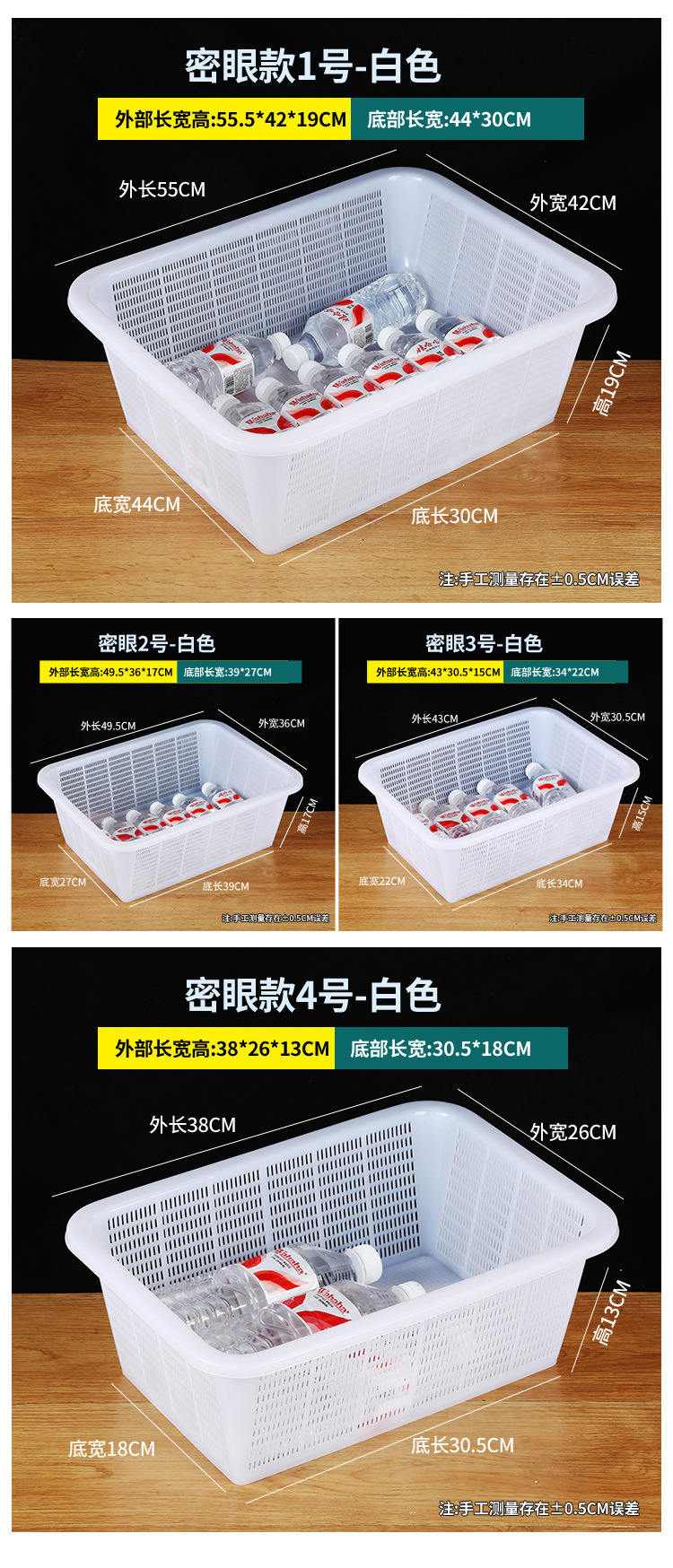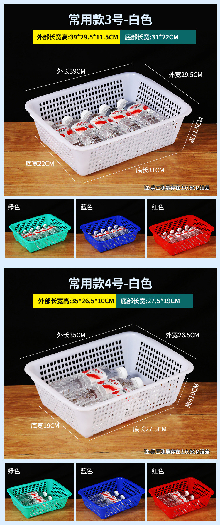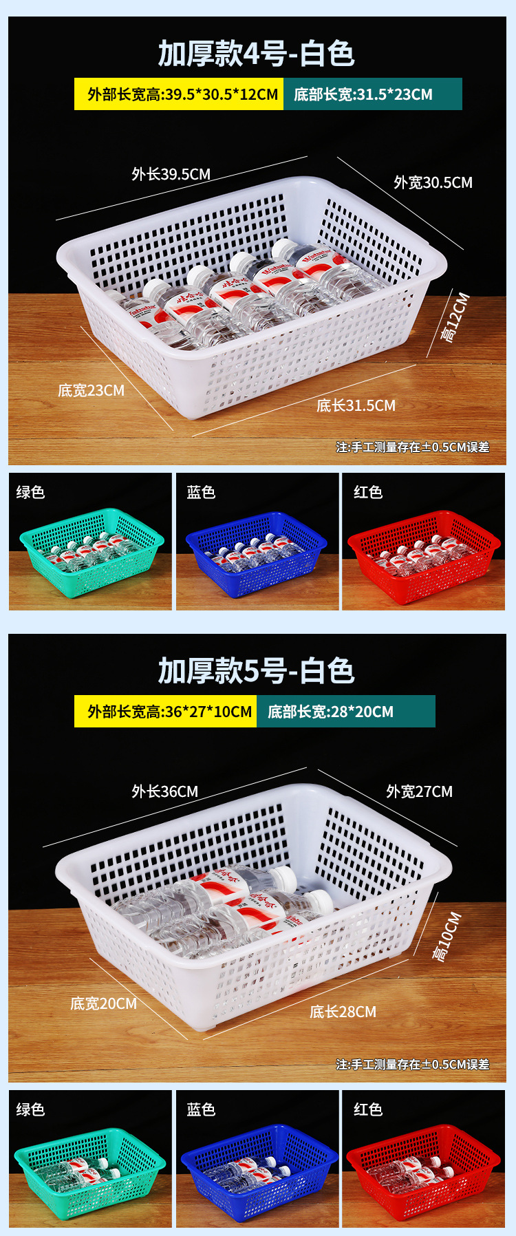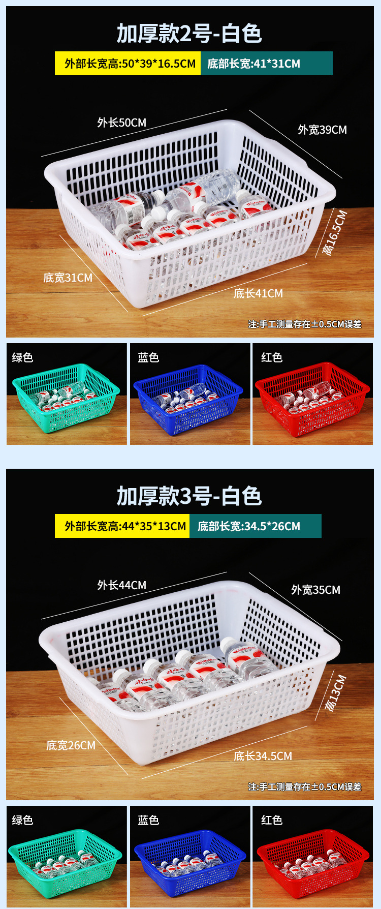 常用款6号白色【长27*宽20*高8.5】,常用款6号红色【长27*宽20*高8.5】,常用款6号蓝色【长27*宽20*高8.5】,常用款6号绿色【长27*宽20*高8.5】,常用款5号白色【长31*宽23*高9】,常用款5号红色【长31*宽23*高9】,常用款5号蓝色【长31*宽23*高9】,常用款5号绿色【长31*宽23*高9】,常用款4号白色【长35*宽26.5*高10】,常用款4号红色【长35*宽26.5*高10】,常用款4号蓝色【长35*宽26.5*高10】,常用款4号绿色【长35*宽26.5*高10】,常用款3号白色【长39*宽29.5*高11.5】,常用款3号红色【长39*宽29.5*高11.5】,常用款3号蓝色【长39*宽29.5*高11.5】,常用款3号绿色【长39*宽29.5*高11.5】,常用款2号白色【长43.5*宽34*高12.5】,常用款2号红色【长43.5*宽34*高12.5】,常用款2号蓝色【长43.5*宽34*高12.5】,常用款2号绿色【长43.5*宽34*高12.5】,常用款1号白色【长48.5*宽38*高14.5】,常用款1号红色【长48.5*宽38*高14.5】,常用款1号蓝色【长48.5*宽38*高14.5】,常用款1号绿色【长48.5*宽38*高14.5】,加厚款7号白色【长27*宽19.5*高8.5】,加厚款7号红色【长27*宽19.5*高8.5】,加厚款7号绿色【长27*宽19.5*高8.5】,加厚款7号蓝色【长27*宽19.5*高8.5】,加厚款6号白色【长31.5*宽23.5*高9.5】,加厚款6号红色【长31.5*宽23.5*高9.5】,加厚款6号蓝色【长31.5*宽23.5*高9.5】,加厚款6号绿色【长31.5*宽23.5*高9.5】,加厚款5号白色【长36*宽27*高10】,加厚款5号红色【长36*宽27*高10】,加厚款5号蓝色【长36*宽27*高10】,加厚款5号绿色【长36*宽27*高10】,加厚款4号白色【长39.5*宽30.5*高12】,加厚款4号红色【长39.5*宽30.5*高12】,加厚款4号蓝色【长39.5*宽30.5*高12】,加厚款4号绿色【长39.5*宽30.5*高12】,加厚款3号白色【长44*宽35*高13】,加厚款3号红色【长44*宽35*高13】,加厚款3号蓝色【长44*宽35*高13】,加厚款3号绿色【长44*宽35*高13】,加厚款2号白色【长50*宽39*高16.5】,加厚款2号红色【长50*宽39*高16.5】,加厚款2号蓝色【长50*宽39*高16.5】,加厚款2号绿色【长50*宽39*高16.5】,加厚款1号白色【长56*宽41.5*高17】,加厚款1号红色【长56*宽41.5*高17】,加厚款1号蓝色【长56*宽41.5*高17】,加厚款1号绿色【长56*宽41.5*高17】,手把款4号白色【长43.5*宽32.5*高14.5】,手把款3号白色【长49.5*宽37*高15.5】,手把款2号白色【长53*宽38*高16.5】,手把款1号白色【长56*宽41.5*高18】,新款手把款3号白色【长48*宽33.5*高16】,新款手把款2号白色【长53*宽38*高17.5】,新款手把款1号白色【长57.5*宽41*高19.5】,密眼款4号白色【长38*宽26*高13】,密眼款3号白色【长43*宽30.5*高15】,密眼款2号白色【长49.5*宽36*高17】,密眼款1号白色【长55.5*宽42*高19】,特厚款5号白色【长30.5*宽25.5*高11.5】,特厚款4号白色【长36.5*宽27*高13】,特厚款3号白色【长42.5*宽32*高15.5】,特厚款2号白色【长49*37*高17.5】,特厚款1号白色【长56.5*宽42.5*高19】,特厚彩筐号3号蓝色(长44宽34高13)厘米