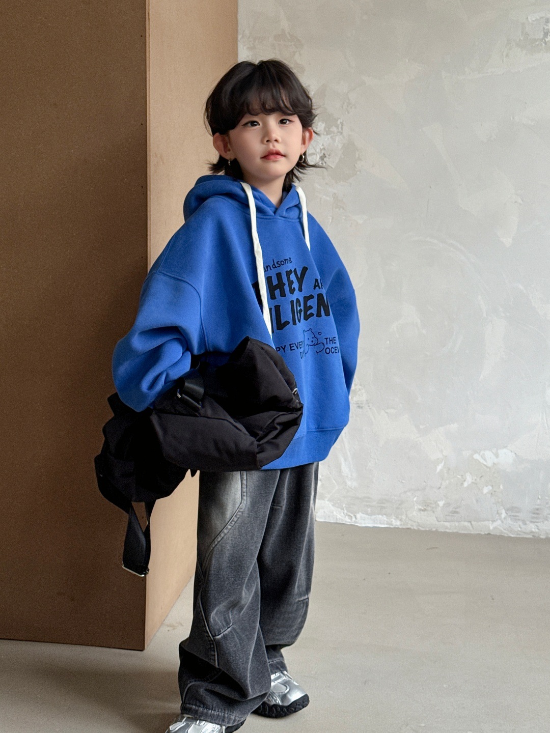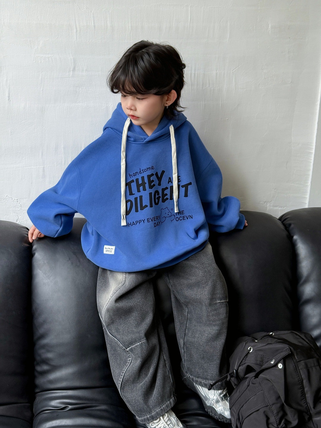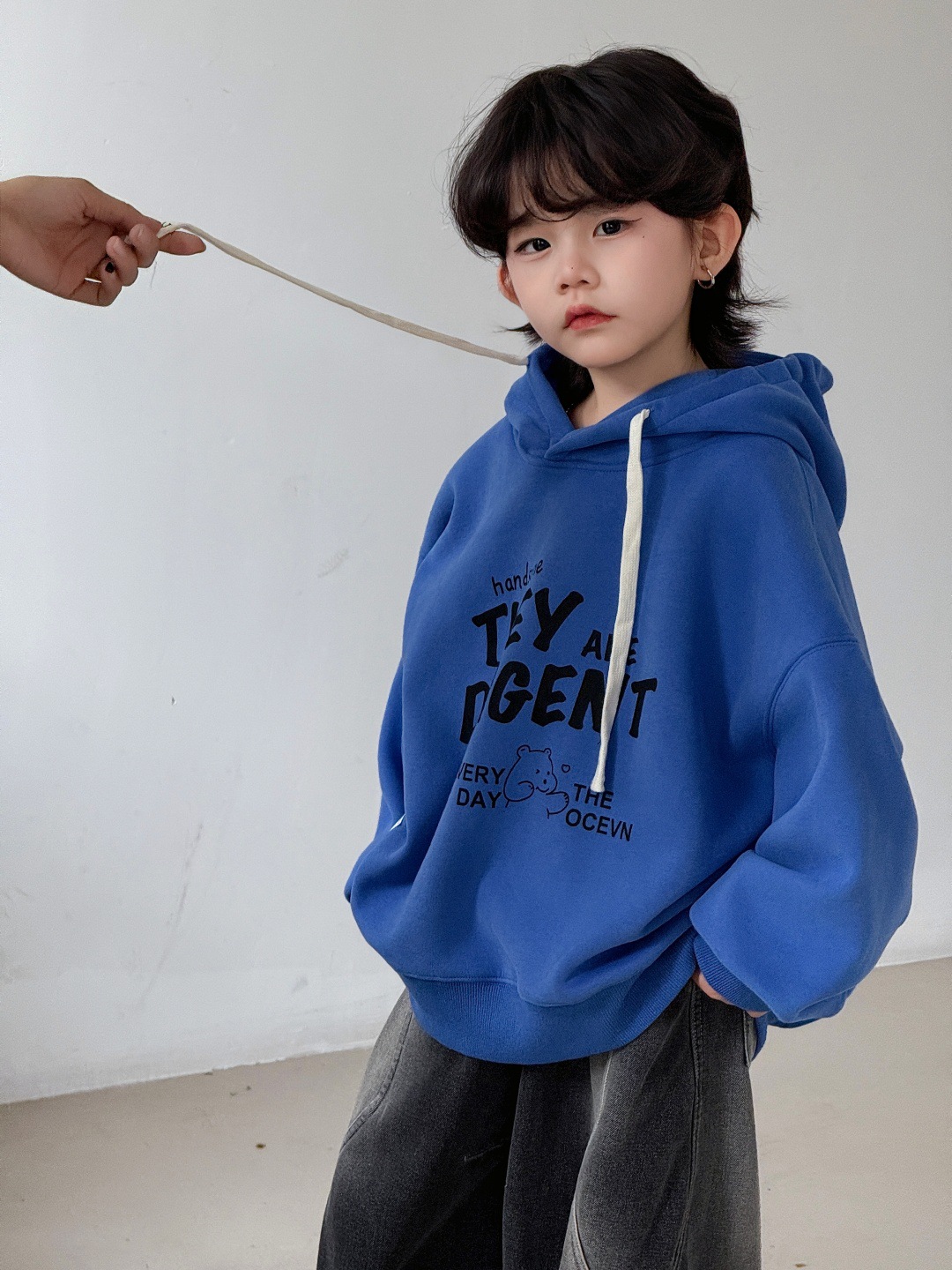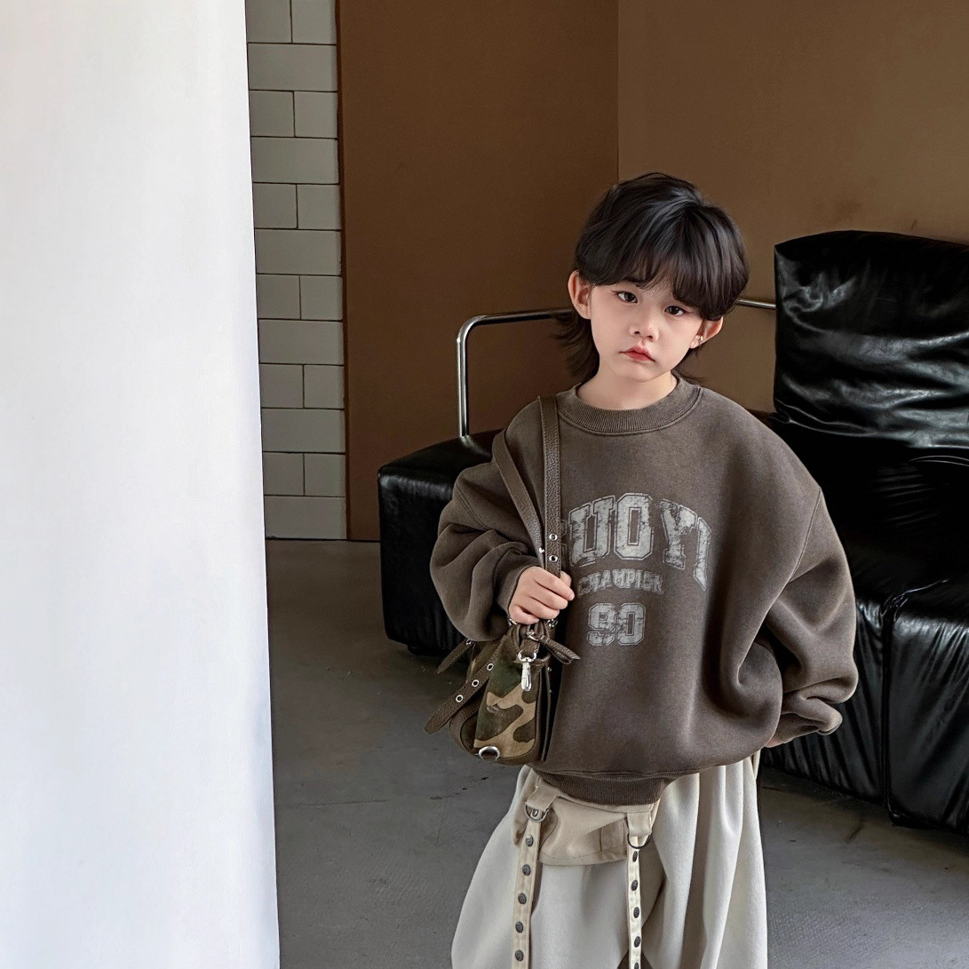 2025年冬季新款儿童卫衣加绒加厚连帽上衣男童中童宽松洋气上衣潮