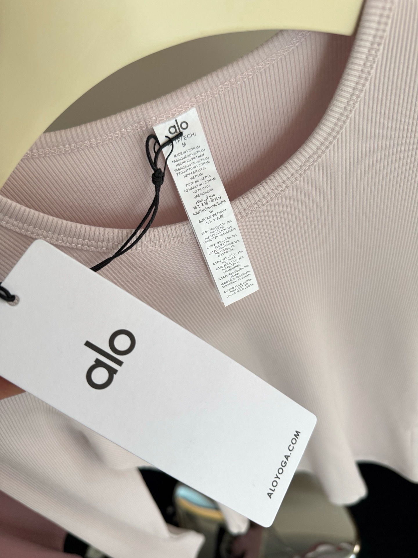 现货alo普拉提长袖纯棉打底衫T恤女运动弹力螺纹健身训练瑜伽上衣
