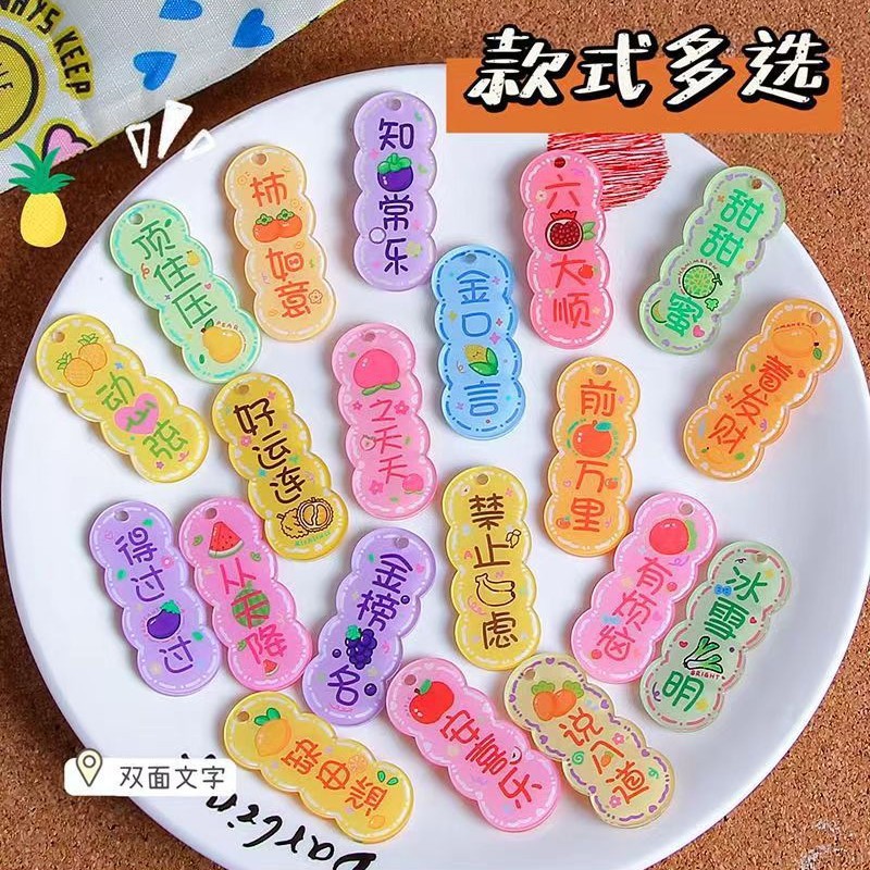 個性的なアイデアの果物の語呂合わせの文字のアクリルのキーホルダーの卸売りの漫画の学生のかばんのペンダントの贈り物の部品