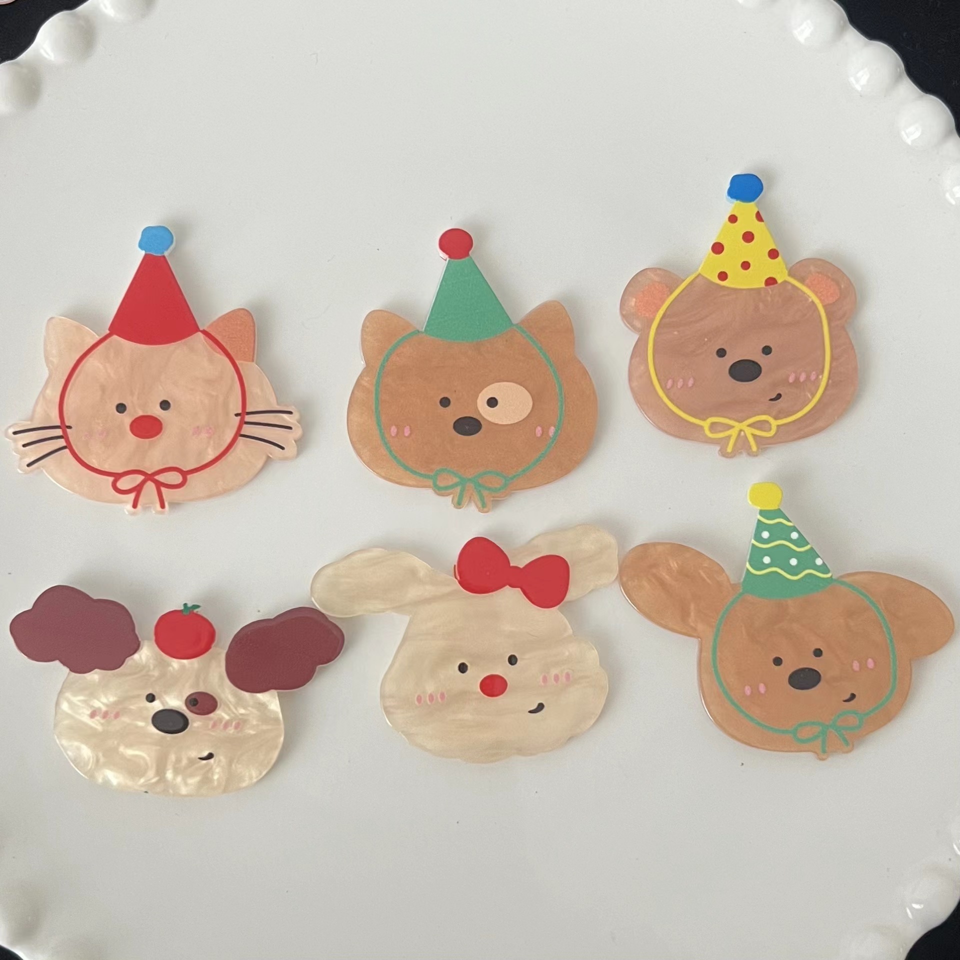 DIY ヘアピン、ヘアアクセサリー、パッチ、携帯電話ケースアクセサリー、かわいい漫画の動物のよだれかけ、子犬、猫、アクリルガール