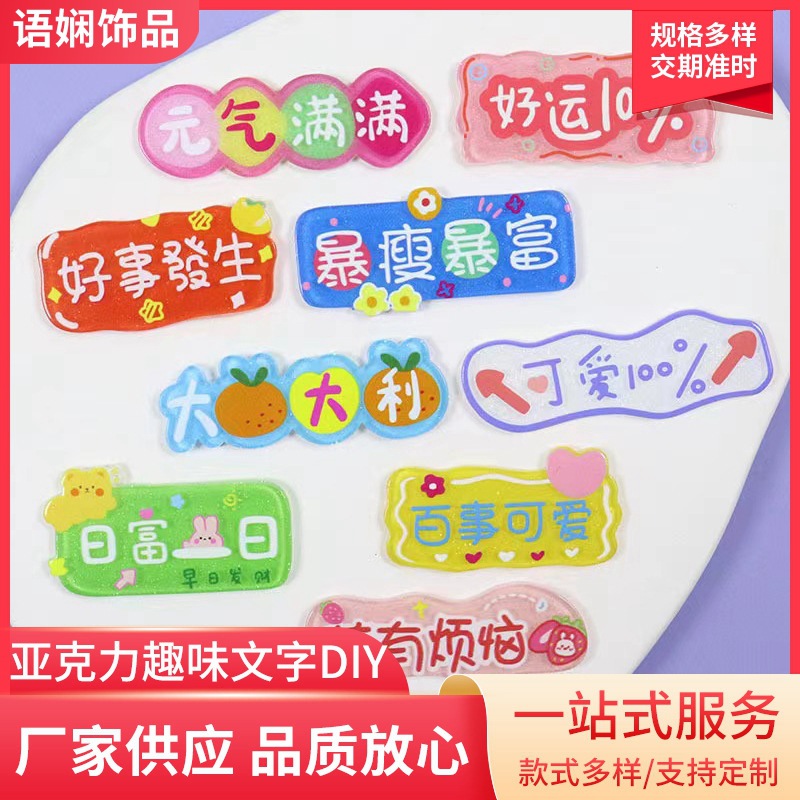 新型アクリル趣味文字diyアクセサリー子供用ヘアピンのブローチ自動車フック材料