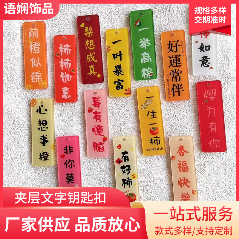 万事如意両面アクリル字牌部品桜はあなたのために柿がバッグになって車の鍵を飾っている