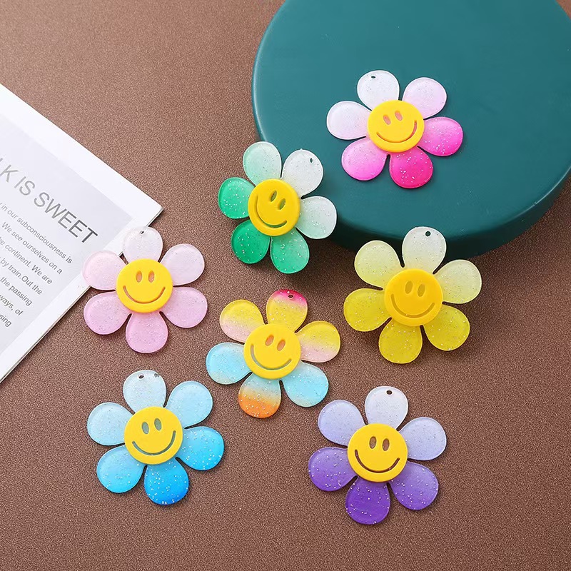 カラフルな笑顔の花のアクセサリーdiyアクセサリーアクリル太陽花ヘアクリップヘアアクセサリー二重携帯ケースシール