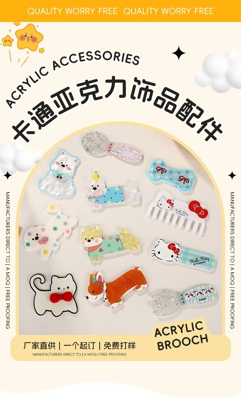 アクリルアニメかわいい顔写真サンリオdiyヘアクリップブローチ髪ひもアクセサリーアクセサリー卸売り