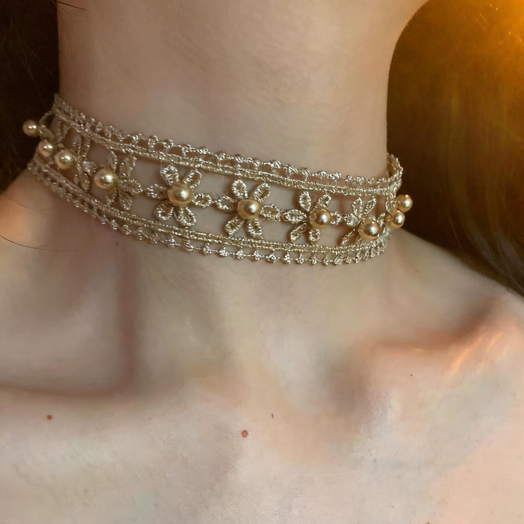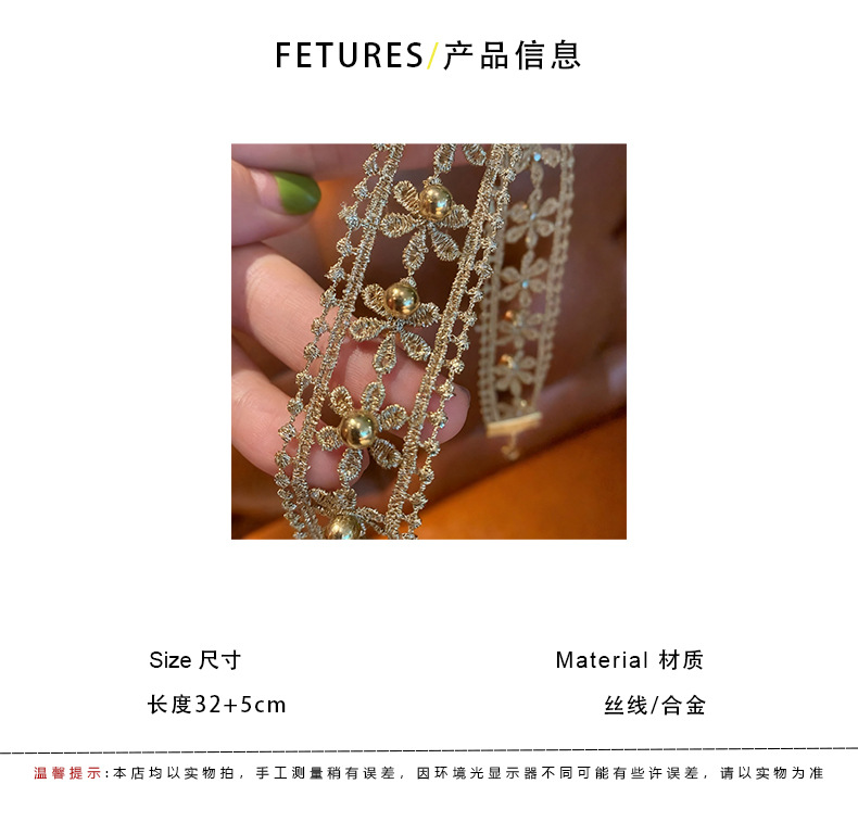 双边金线 镂空花朵钉珠choker项圈女布艺废土风锁骨链配饰2025潮