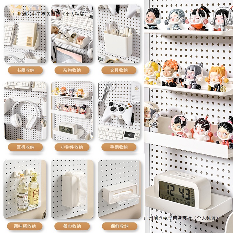 圆孔洞洞板配件25孔距挂钩挂件零件盒套装书房置物架墙上架