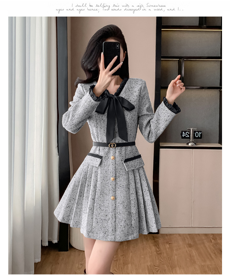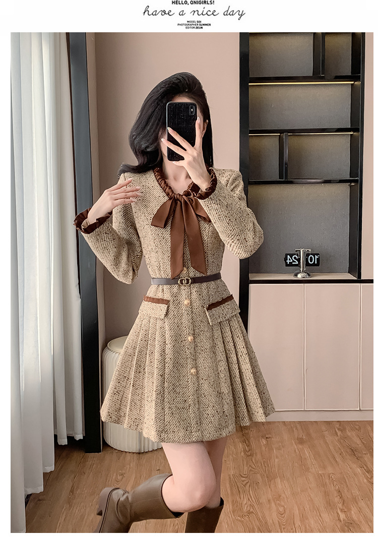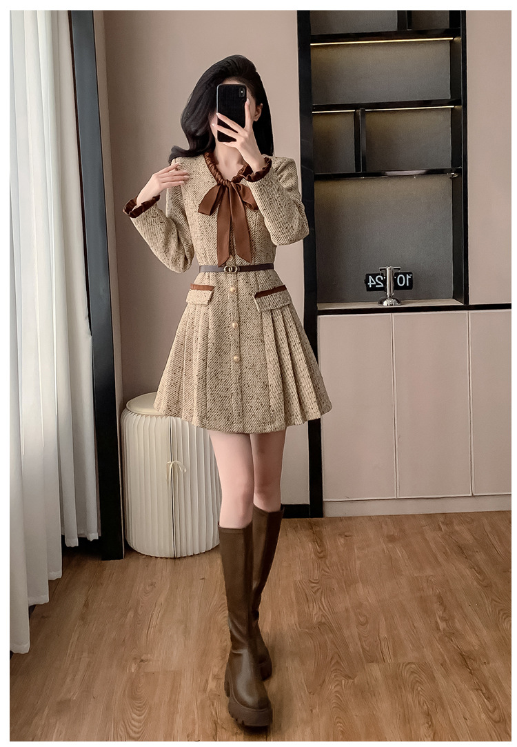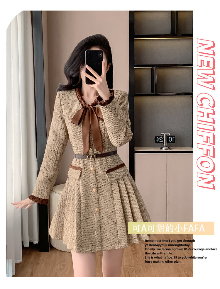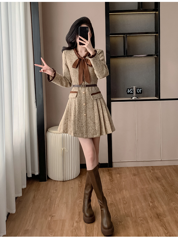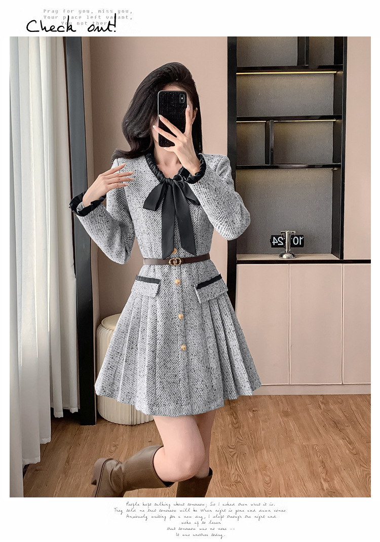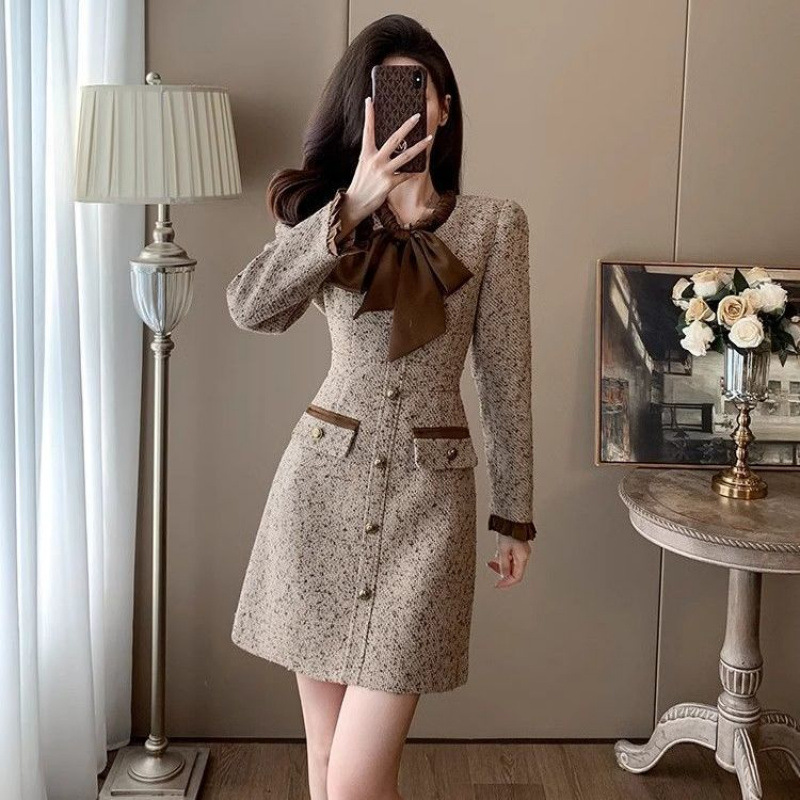 xyy2455法式气质小香风名媛连衣裙女2025秋冬时尚富家千金感短裙