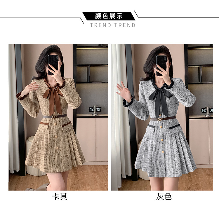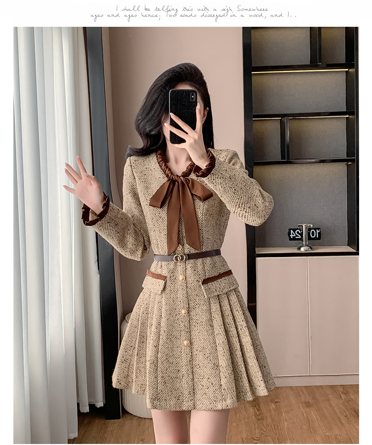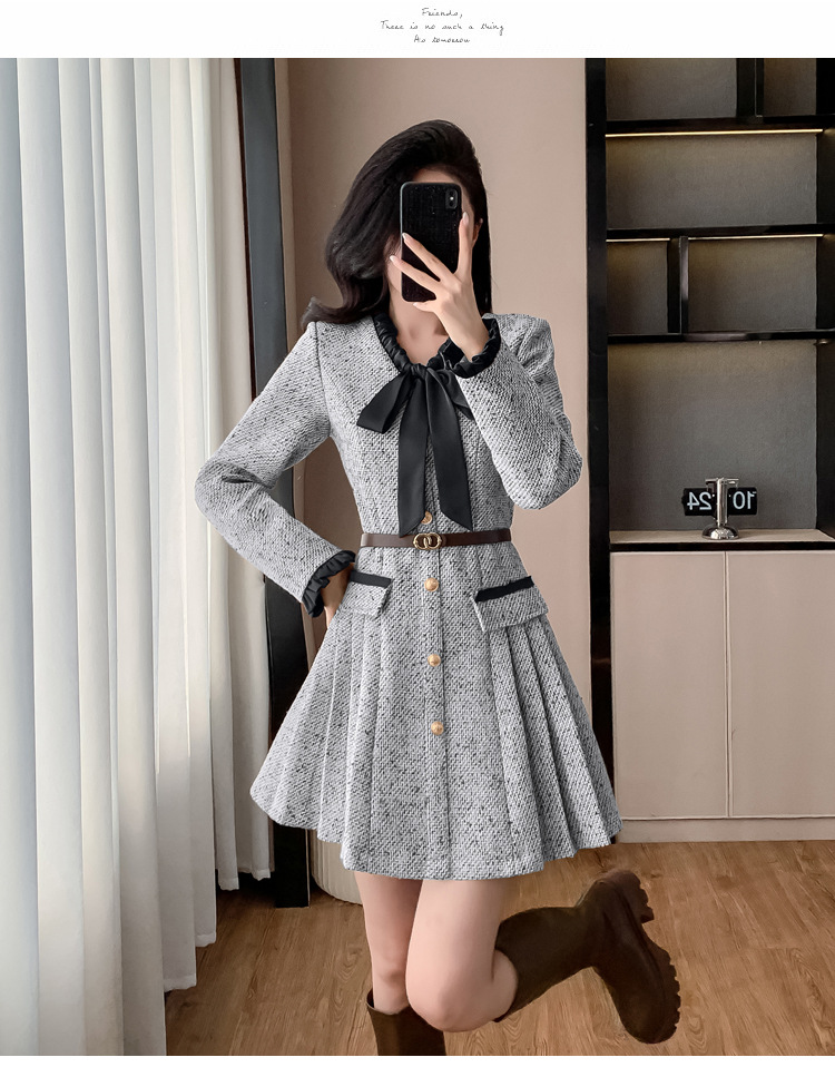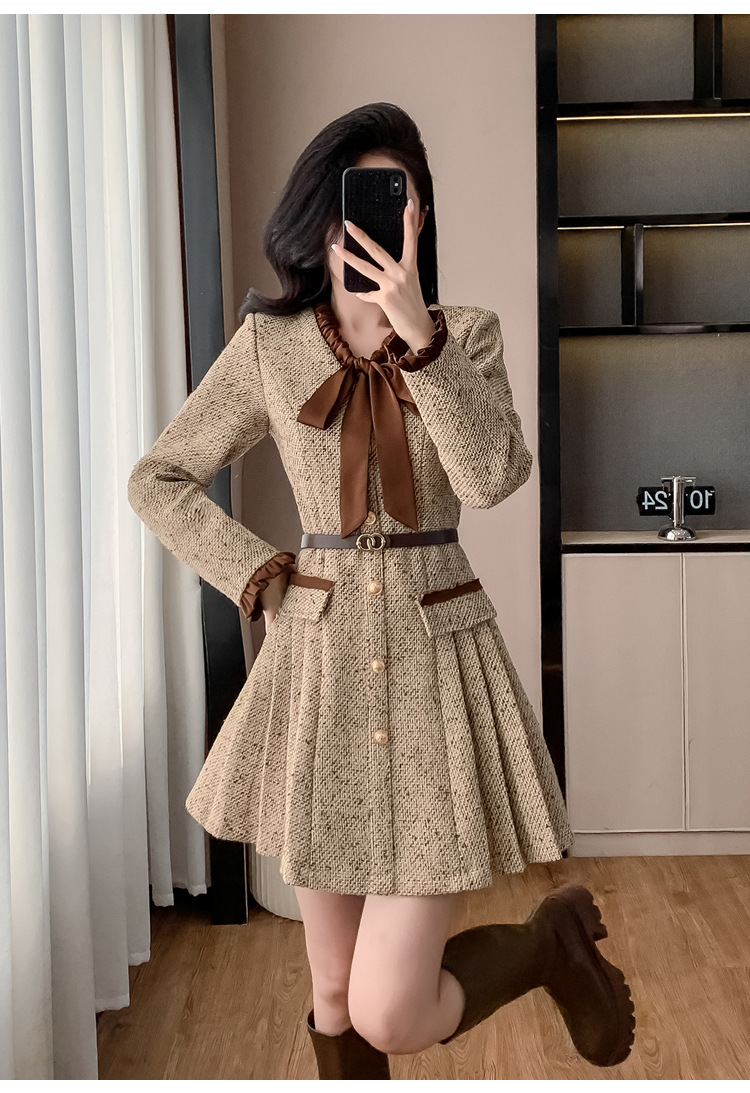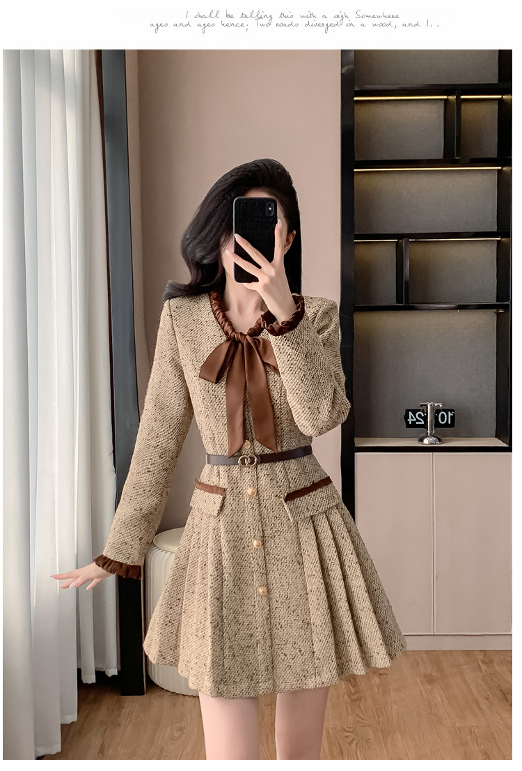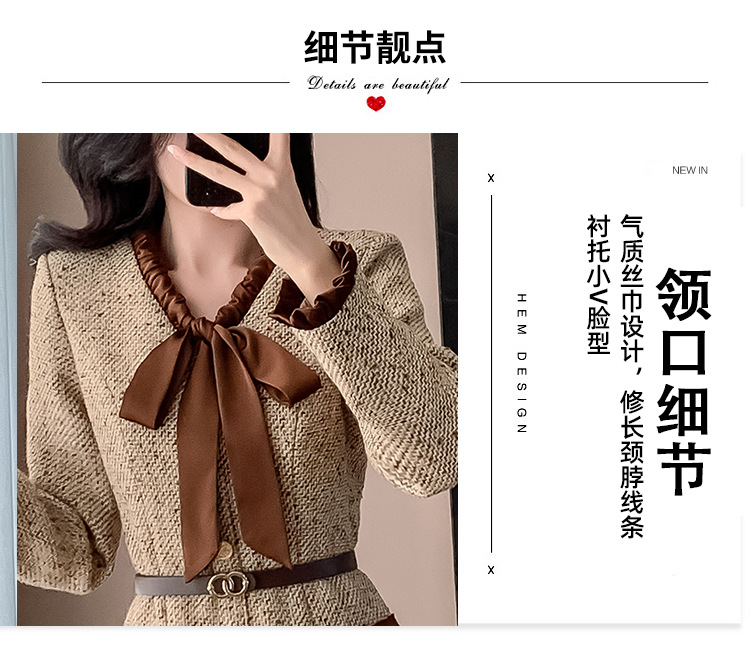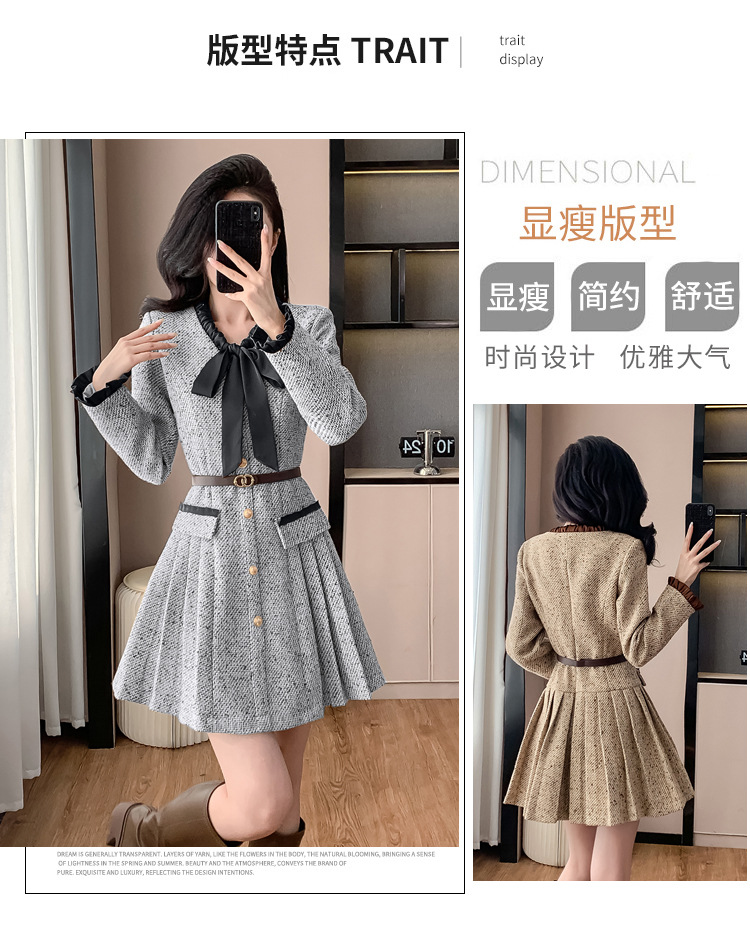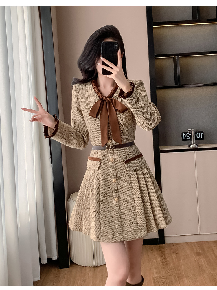 xyy2455法式气质小香风名媛连衣裙女2025秋冬时尚富家千金感短裙