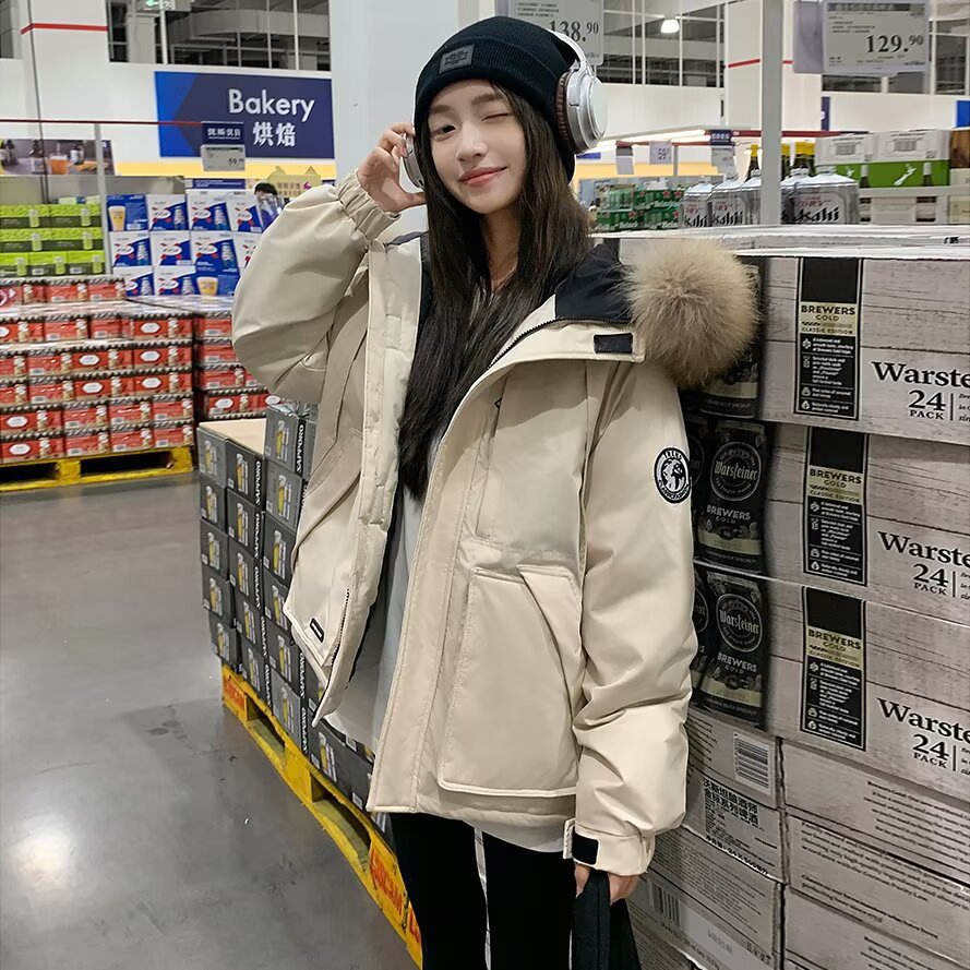 匠一 大毛领贴标派克服女2025秋冬新款加厚保暖学生BF风ins面包服