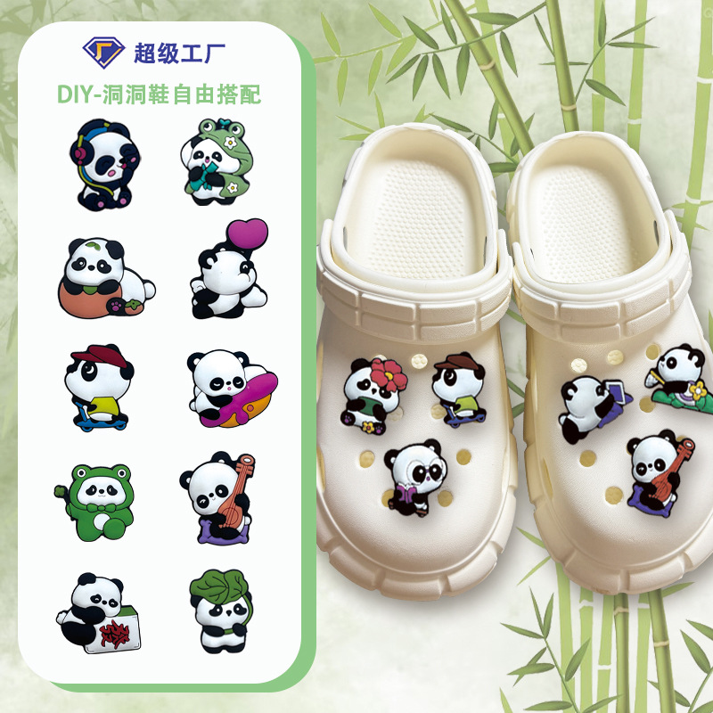 工場直送 ライフスタイル パンダ ドリルシューズ アクセサリー PVC樹脂製 シューズデコレーション DIY 高級シューズバックル ジュエリーアクセサリー