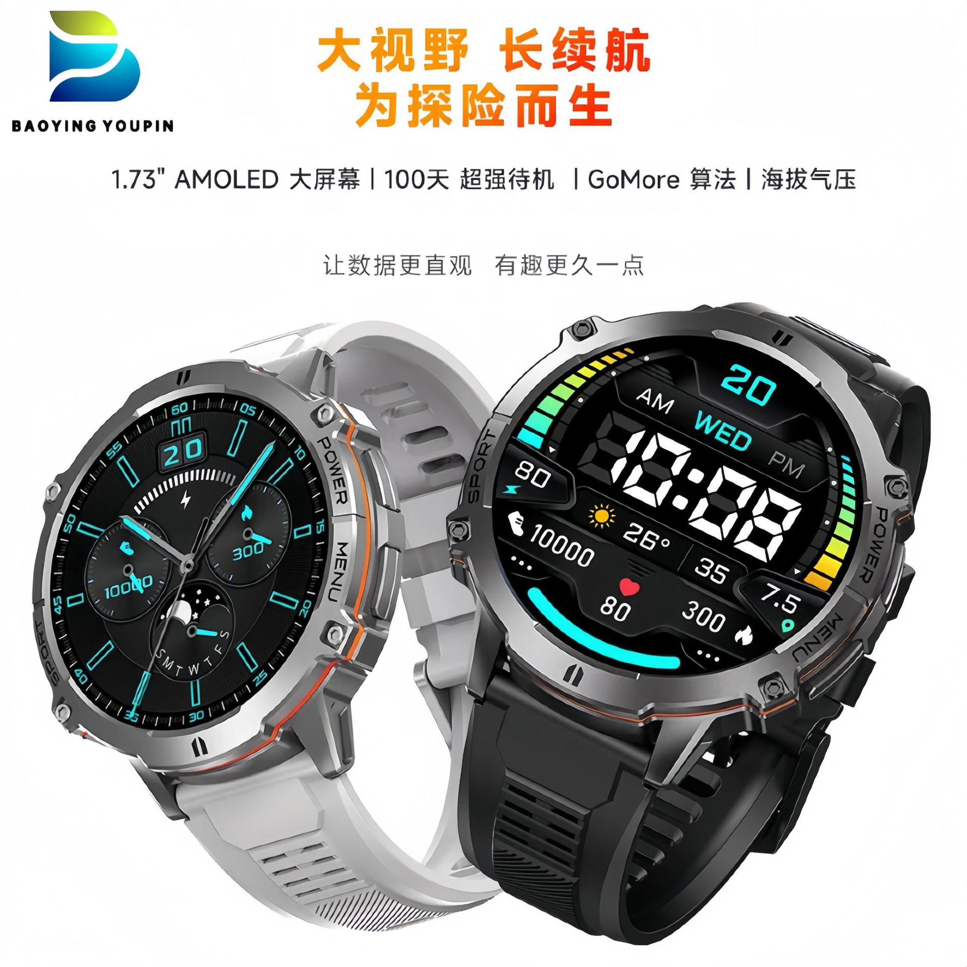アウトドアスポーツ向け三防(耐衝撃・防水・防塵)大容量バッテリー搭載X3スマートウォッチ、丸型ディスプレイ、Bluetooth通話、心拍数・気圧・地磁気測定、長時間バッテリー