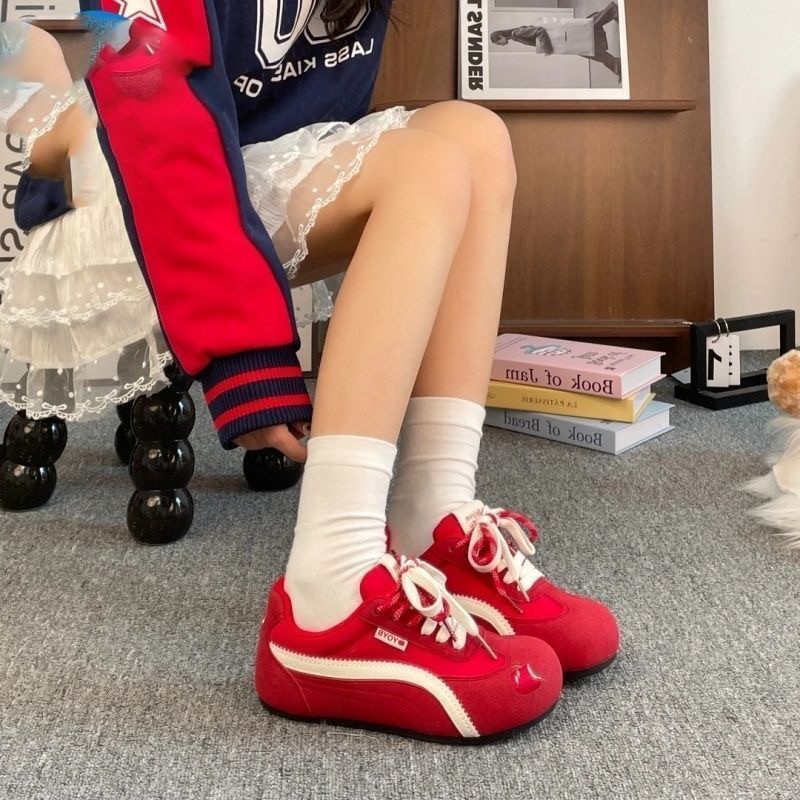 1 校园风设计感百搭小白鞋子女2025年新款爆款秋季小众德训鞋休闲鞋