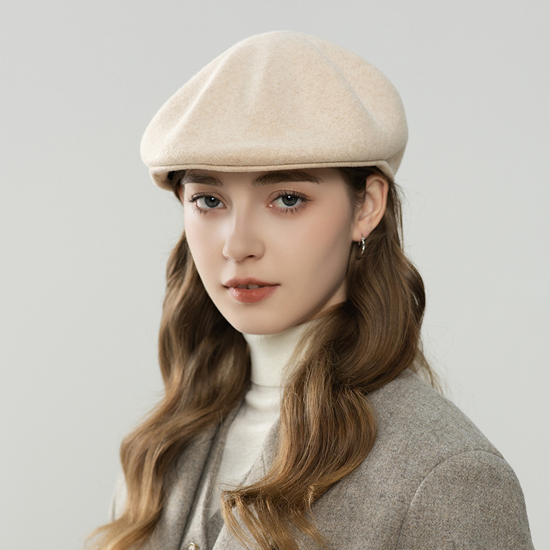 立体定型新羊毛贝雷帽女法式复古百搭文艺画家帽秋冬名媛帽子批发